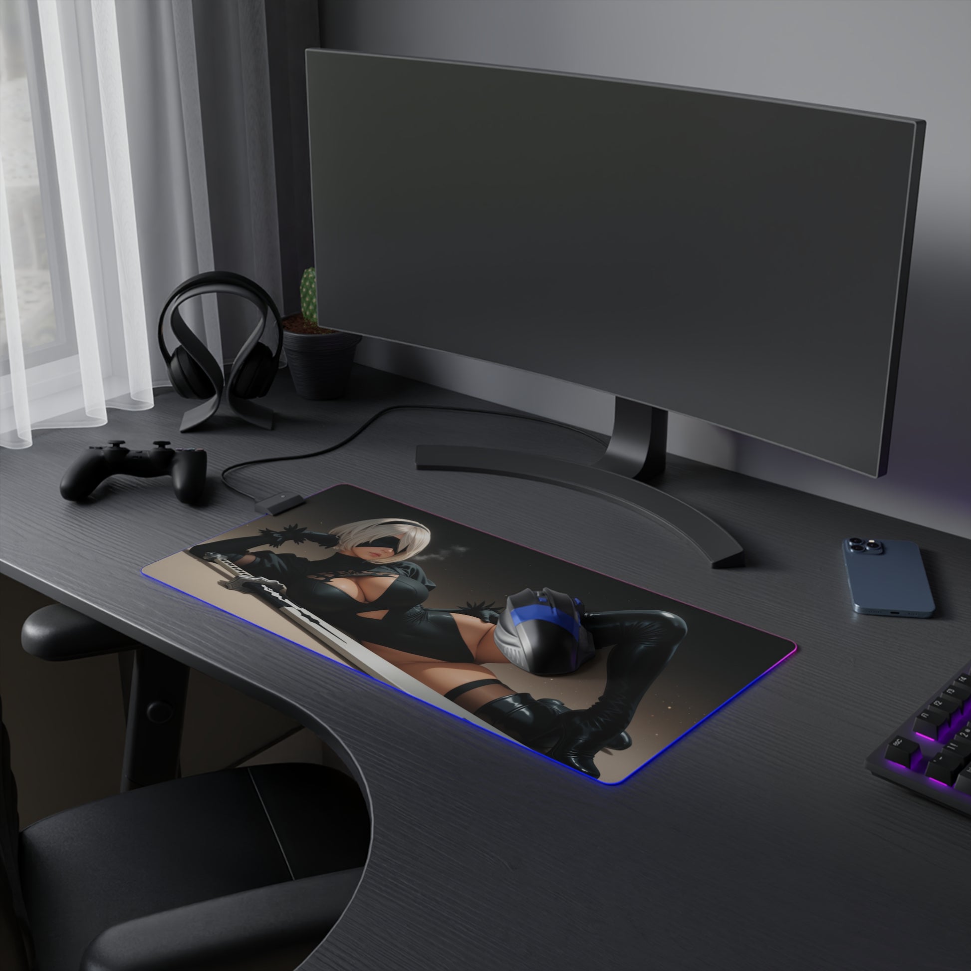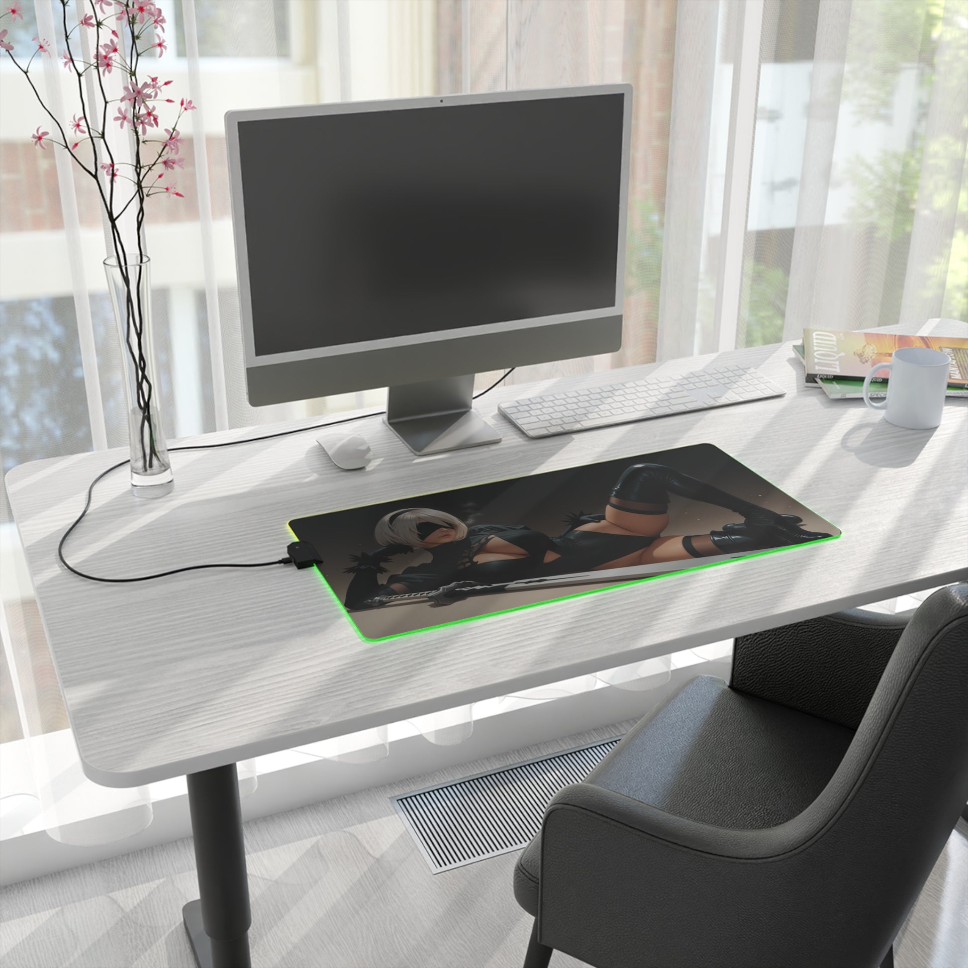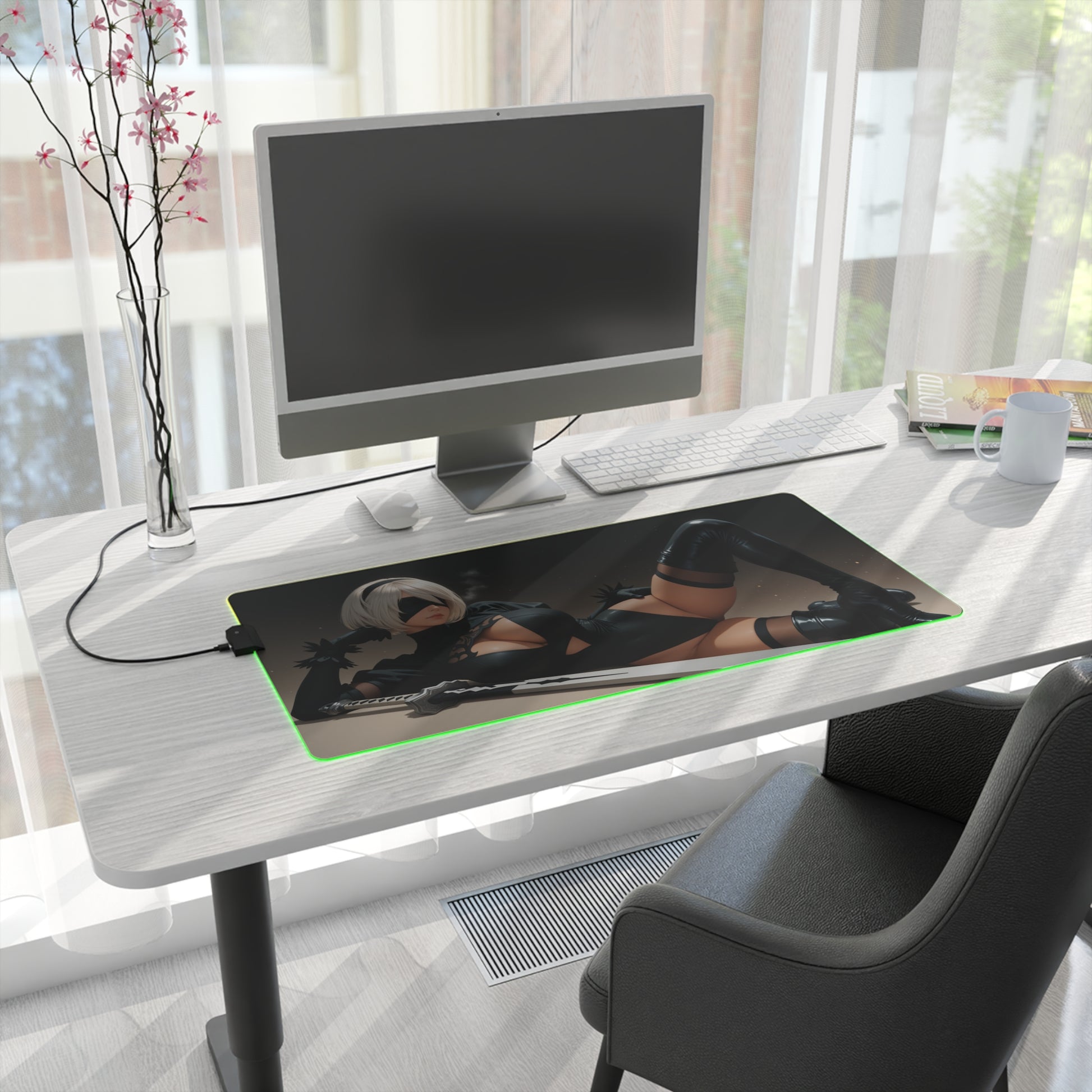 2B Nier Automata Schreibtischunterlage – LED RGB-Pad, Waifu Anime Girl Gaming-Setup