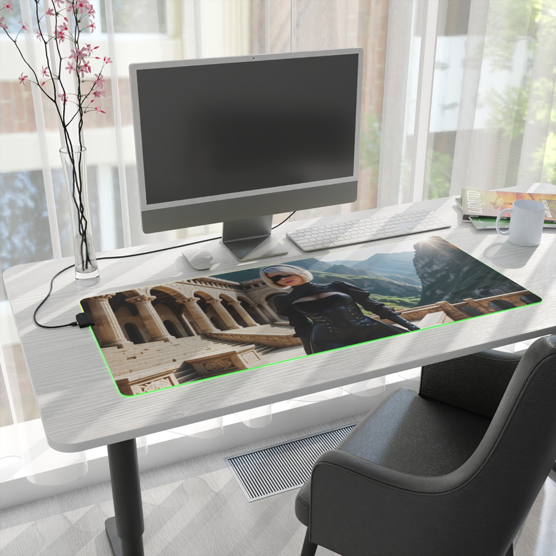 2B Nier Automata Schreibtischunterlage – LED RGB-Pad, Waifu Anime Girl Gaming-Setup