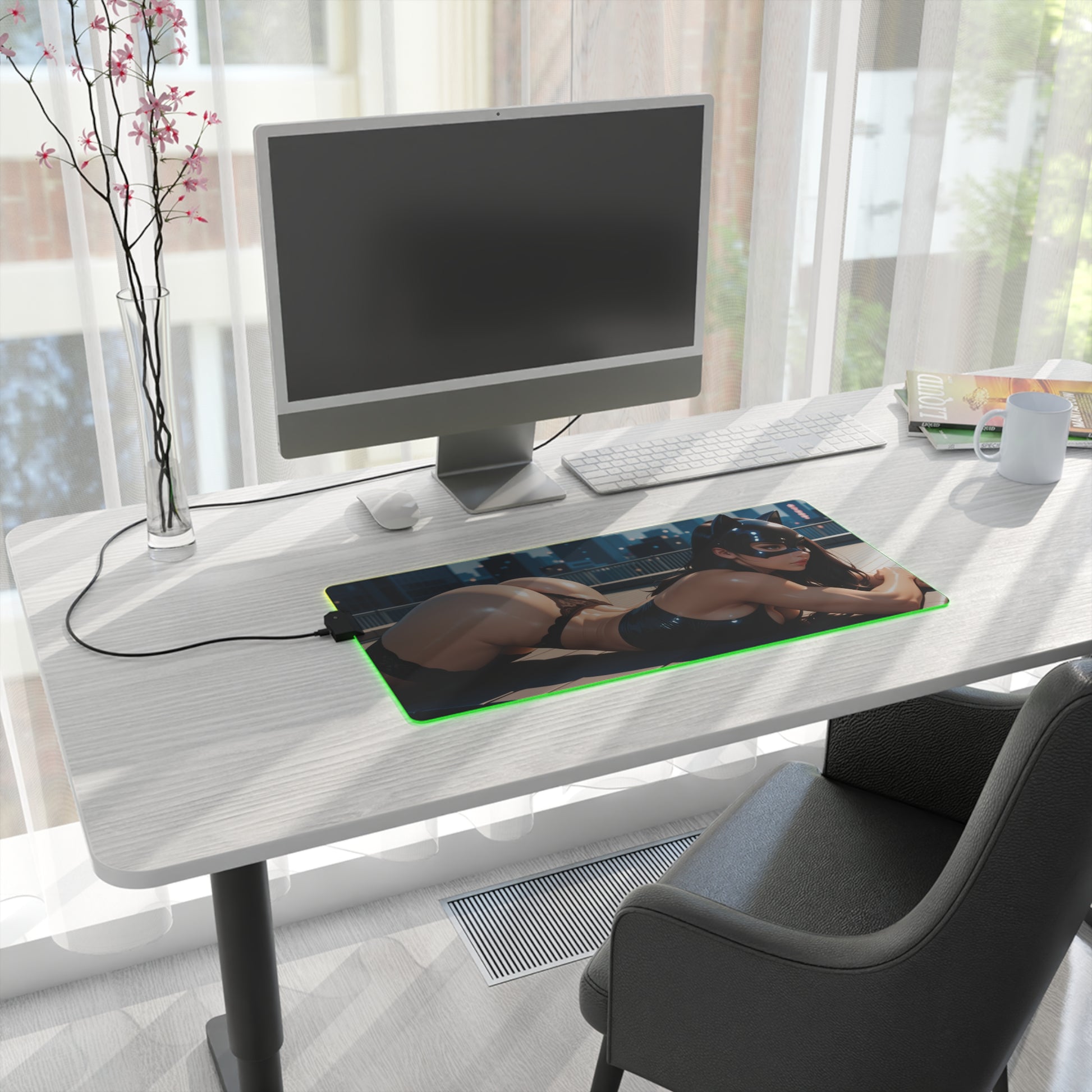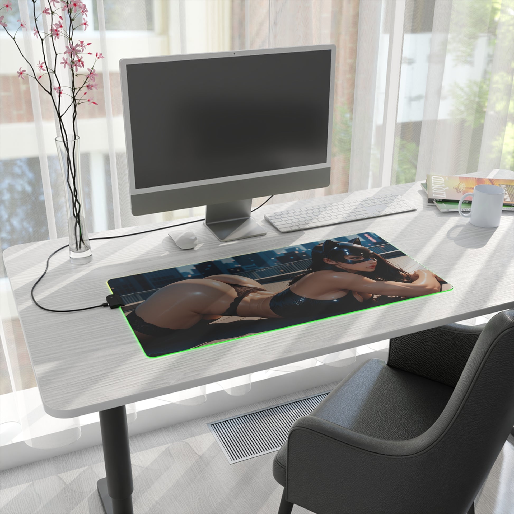 Catwoman Desk Mat – LED RGB Pad, Waifu Thief Anime Girl Gaming Setup