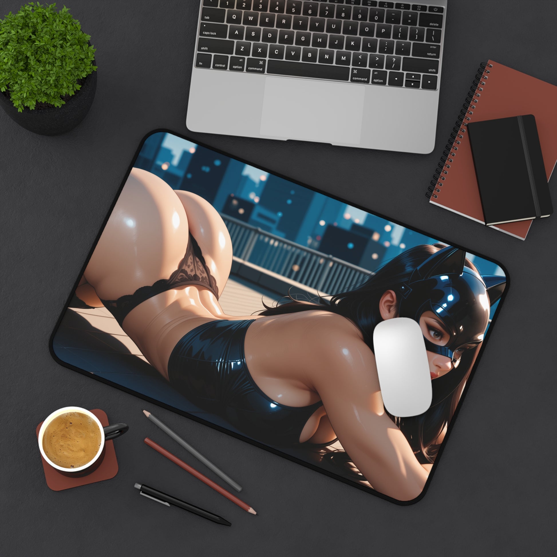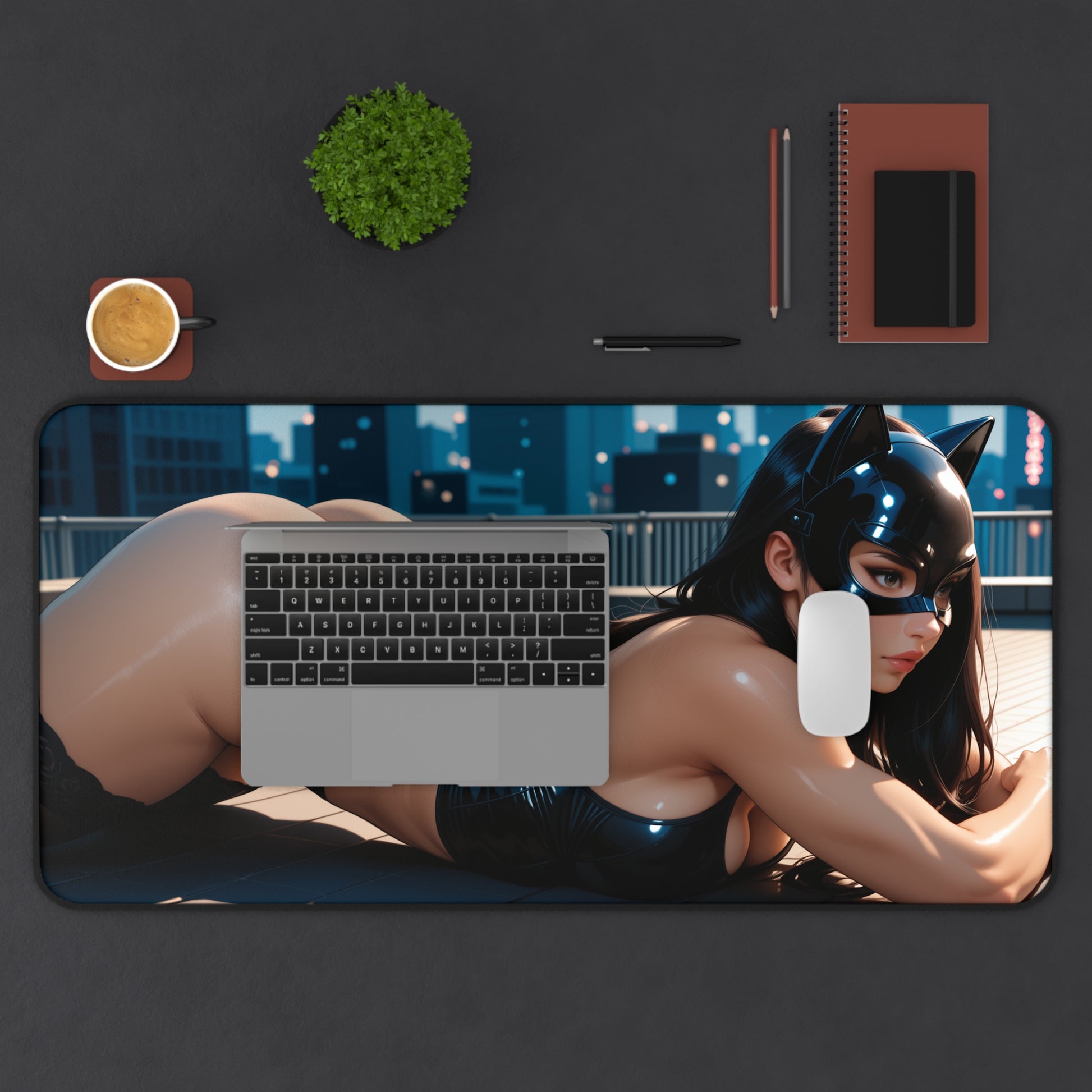 Catwoman Gaming Mouse Pad, Superhero Desk Mat, Comic Villain Girl Gaming Setup