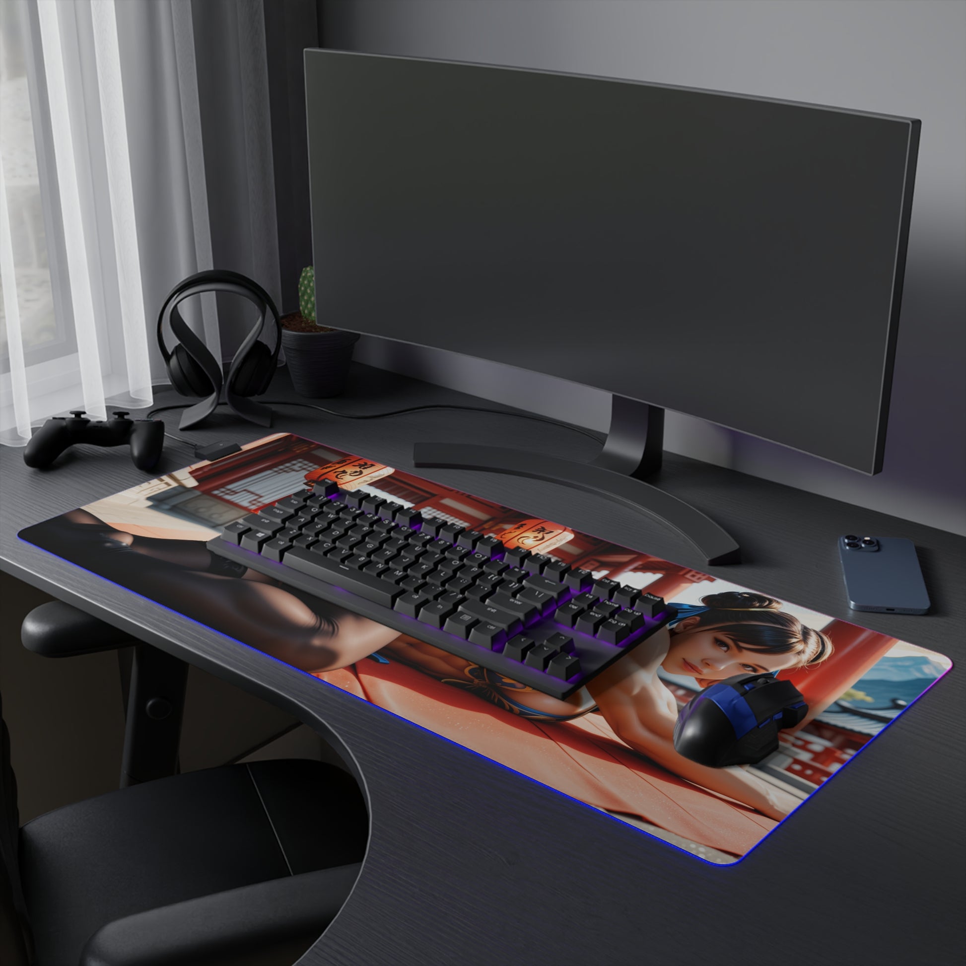 Chun-Li Desk Mat – LED RGB Pad, Waifu Fighter Anime Girl Gaming Setup