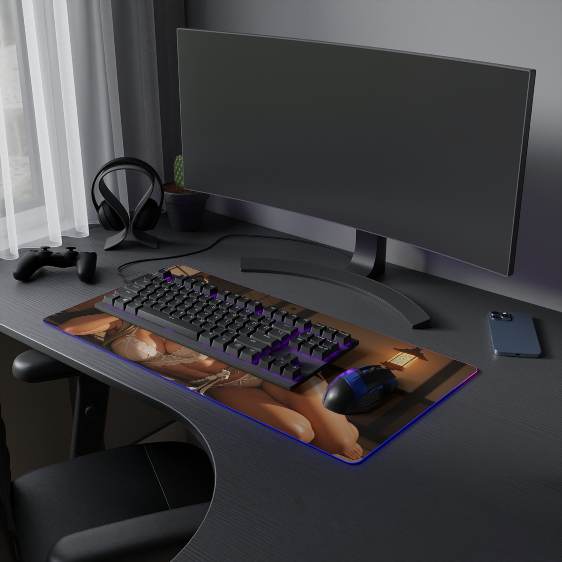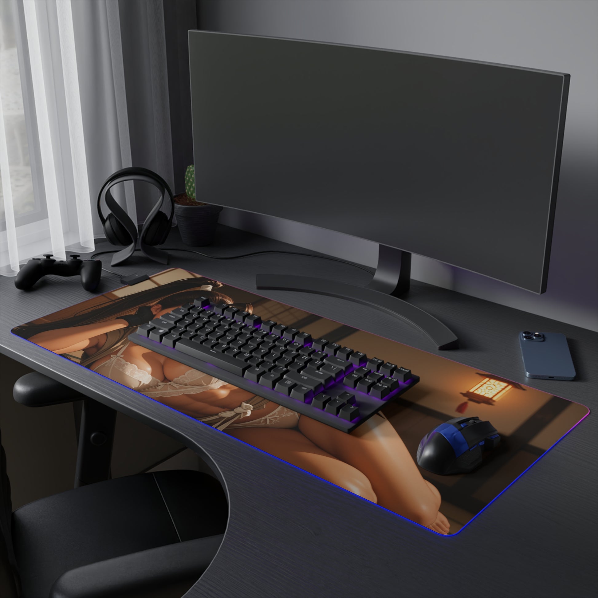 Ibuki Schreibtischunterlage – LED RGB-Pad, Waifu Anime-Mädchen Gaming-Setup