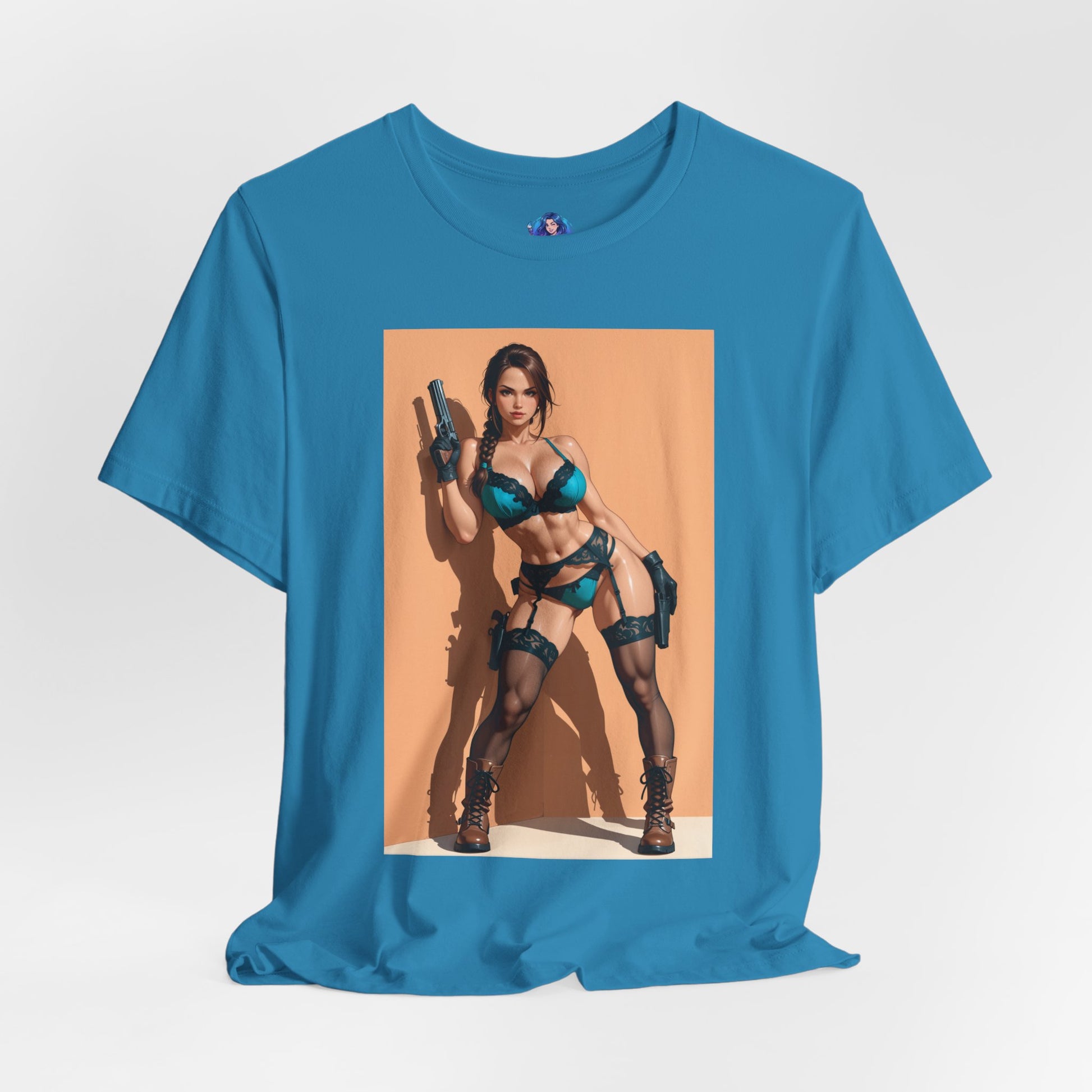 Dieses Lara-Croft-T-Shirt feiert die wohl bekannteste Abenteurerin der Welt mit einem markanten Anime-Design, das ihre furchtlose Selbstsicherheit, ihre athletische Schönheit und ihren legendären Tomb-Raider-Geist perfekt einfängt. Ideal für Fans, die der ultimativen Heldin der Videospielgeschichte eine stylische Hommage erweisen möchten.