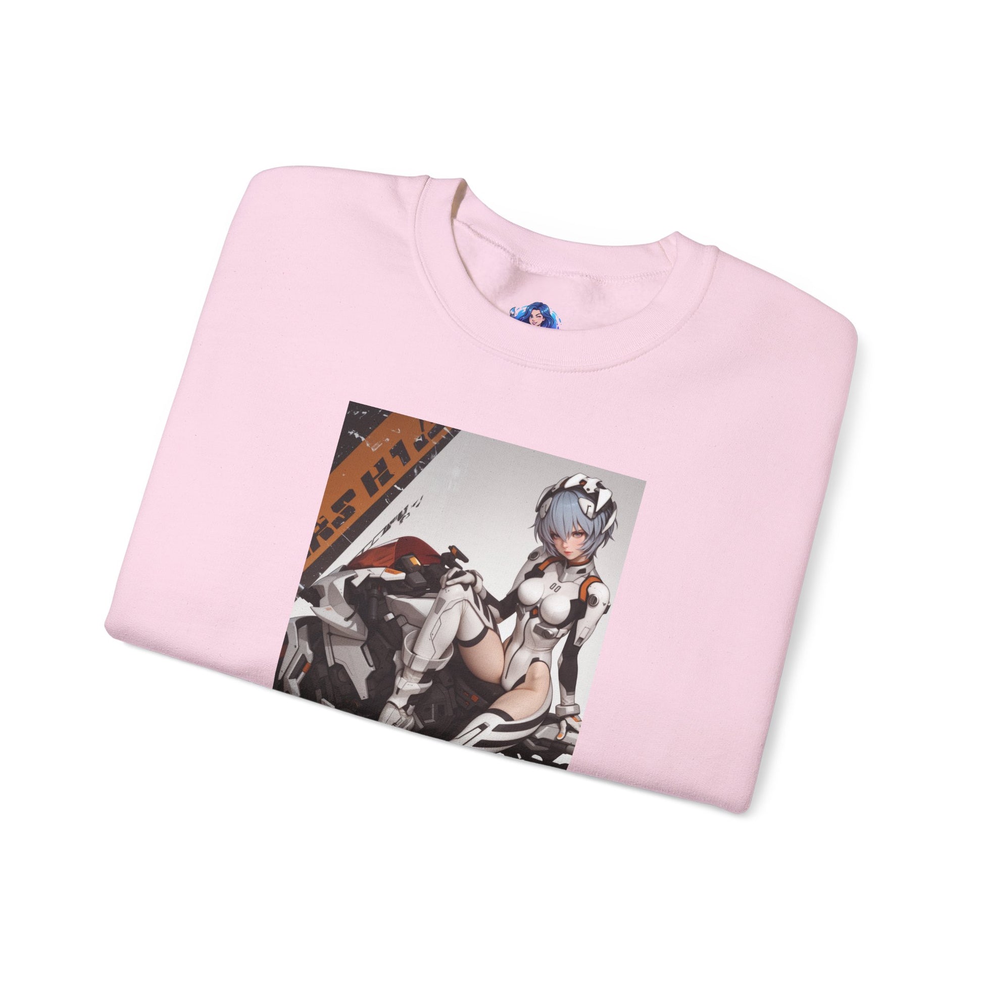 The design highlights Rei’s pale blue hair, calm expression, and signature futuristic aesthetic, illustrated in a smooth, modern style that captures her unmistakable presence. The artwork stands out beautifully on the crewneck fabric, making it an elegant addition to any anime wardrobe.
