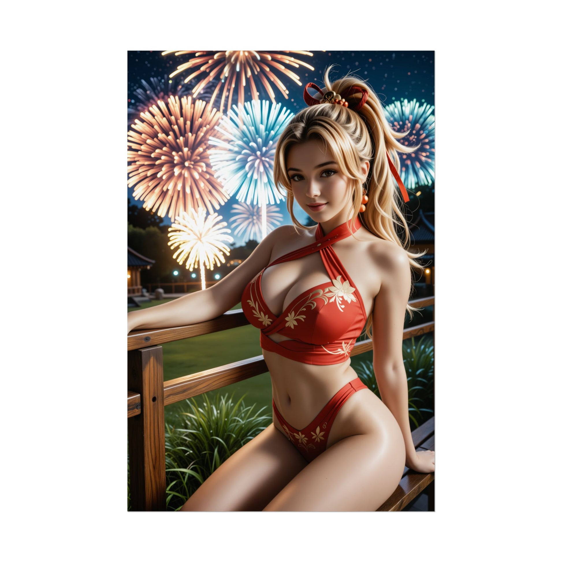 Dieses Kunstwerk im Anime-Stil zeigt Yoimiya – fröhlich, temperamentvoll und voller Sommerfeeling. Ihr strahlendes Lächeln, ihr goldenes Haar und ihr traditionelles Festtagsoutfit machen es zu einem lebendigen Wandbild für Fans der von Genshin Impact inspirierten Energie und Wärme.