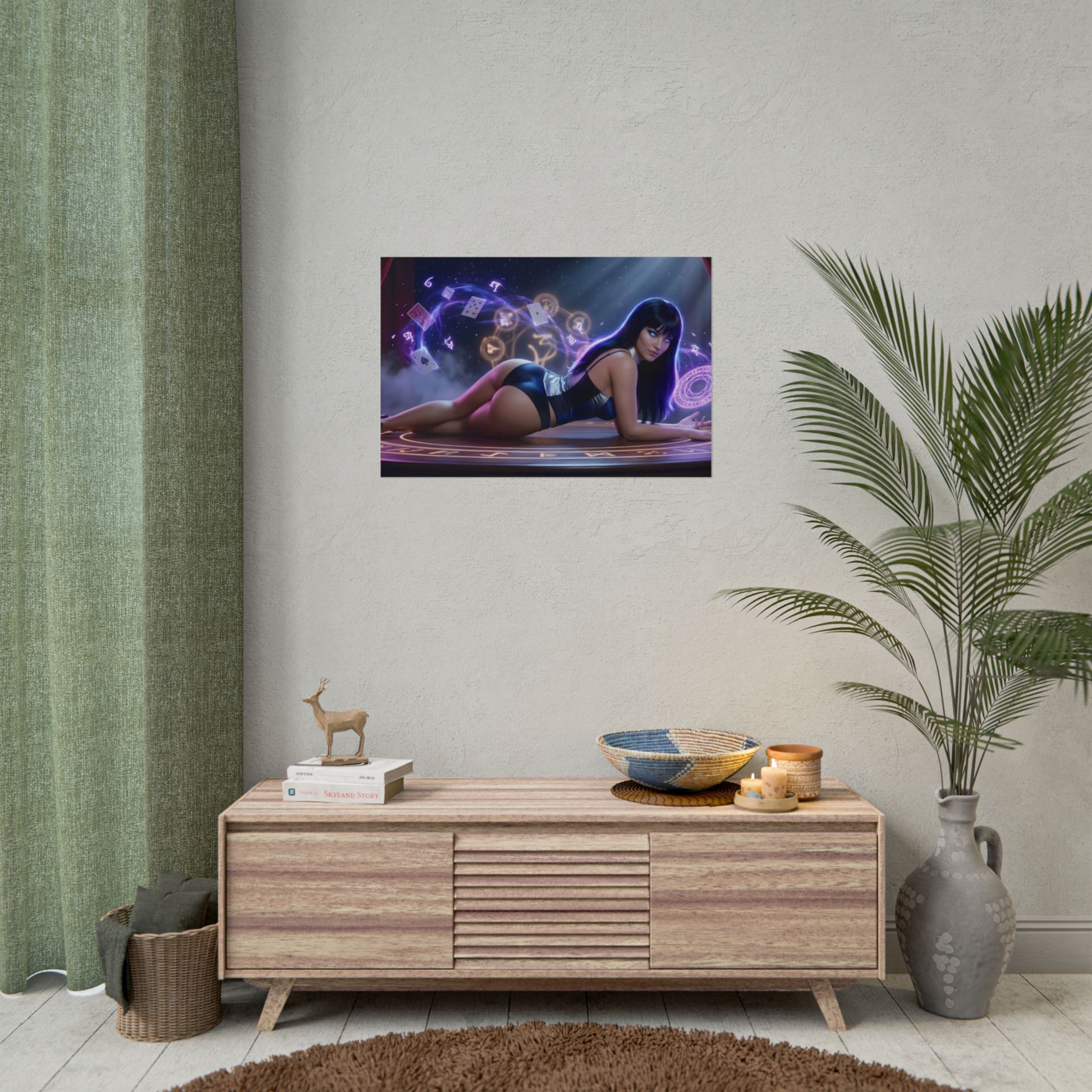 Zatanna Poster – DC Comics Art Print featuring a stage-magic aesthetic with clean character focus and luminous violet accents. This artwork fits beautifully into modern, fantasy, and character-inspired spaces.