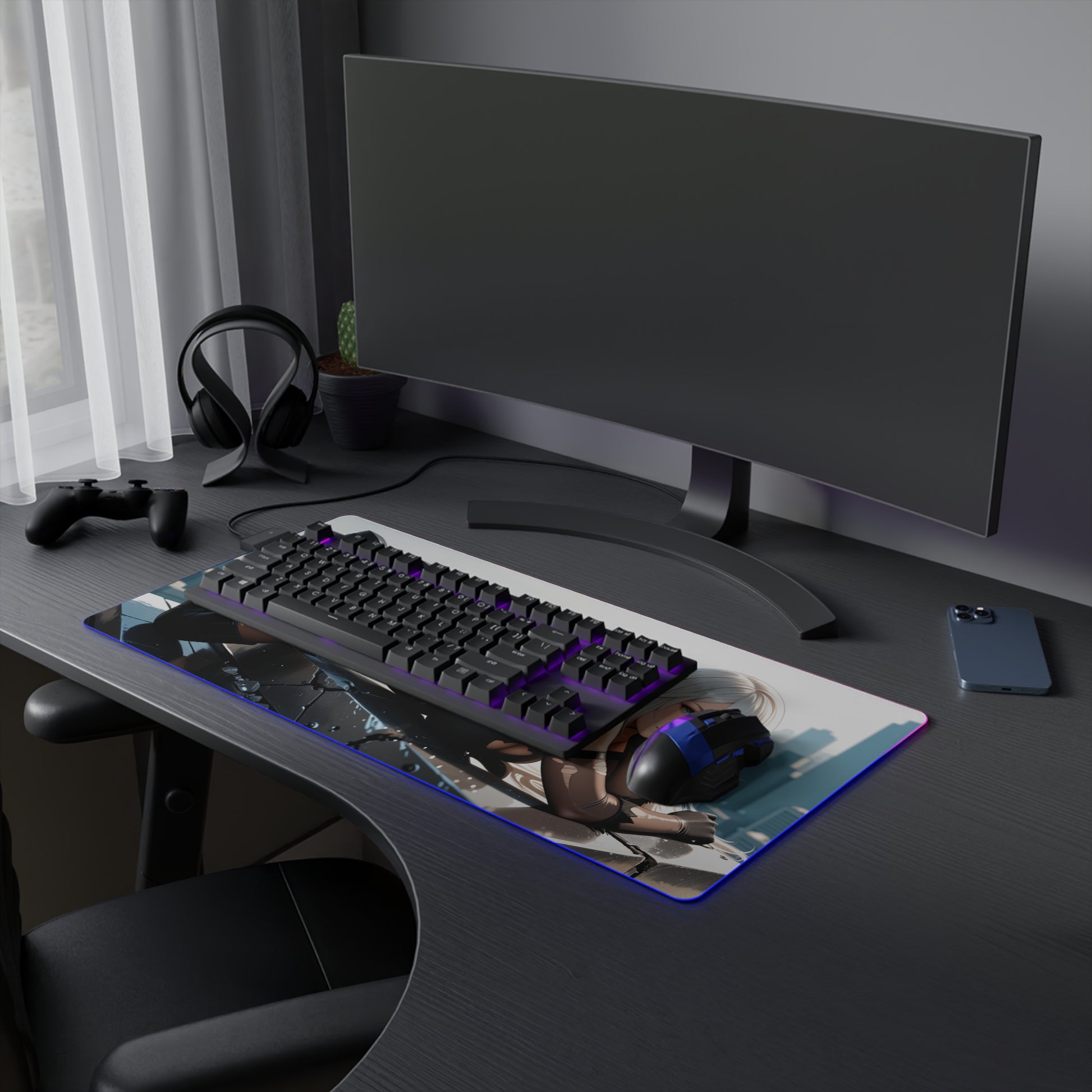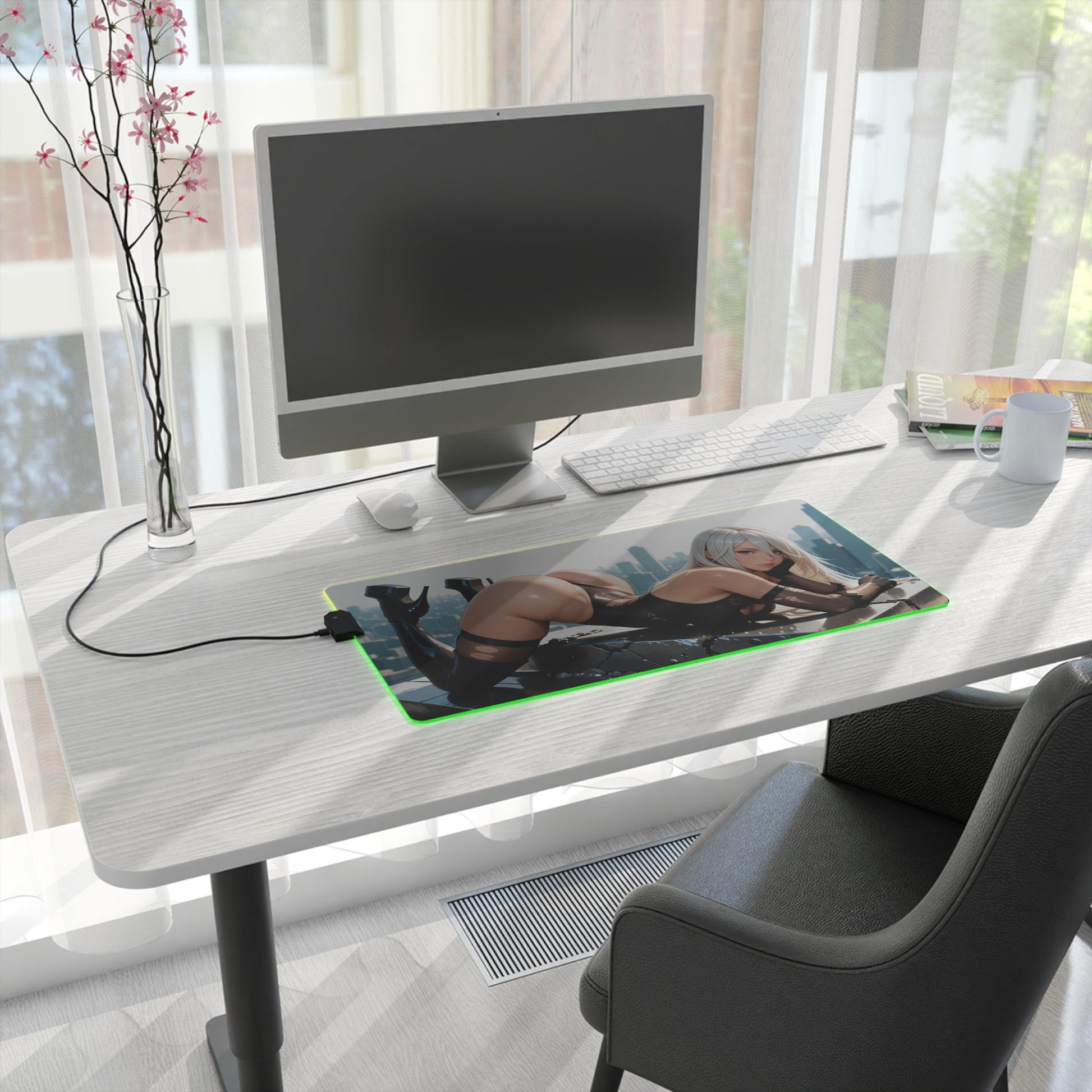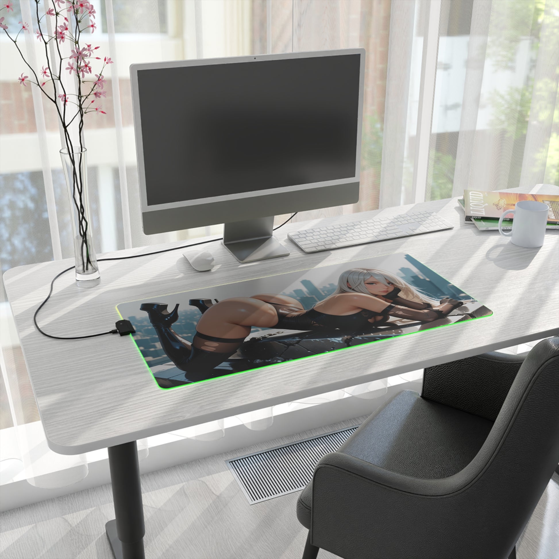 2B Desk Mat – LED RGB Pad, Elegant Waifu Android Girl Gaming Setup