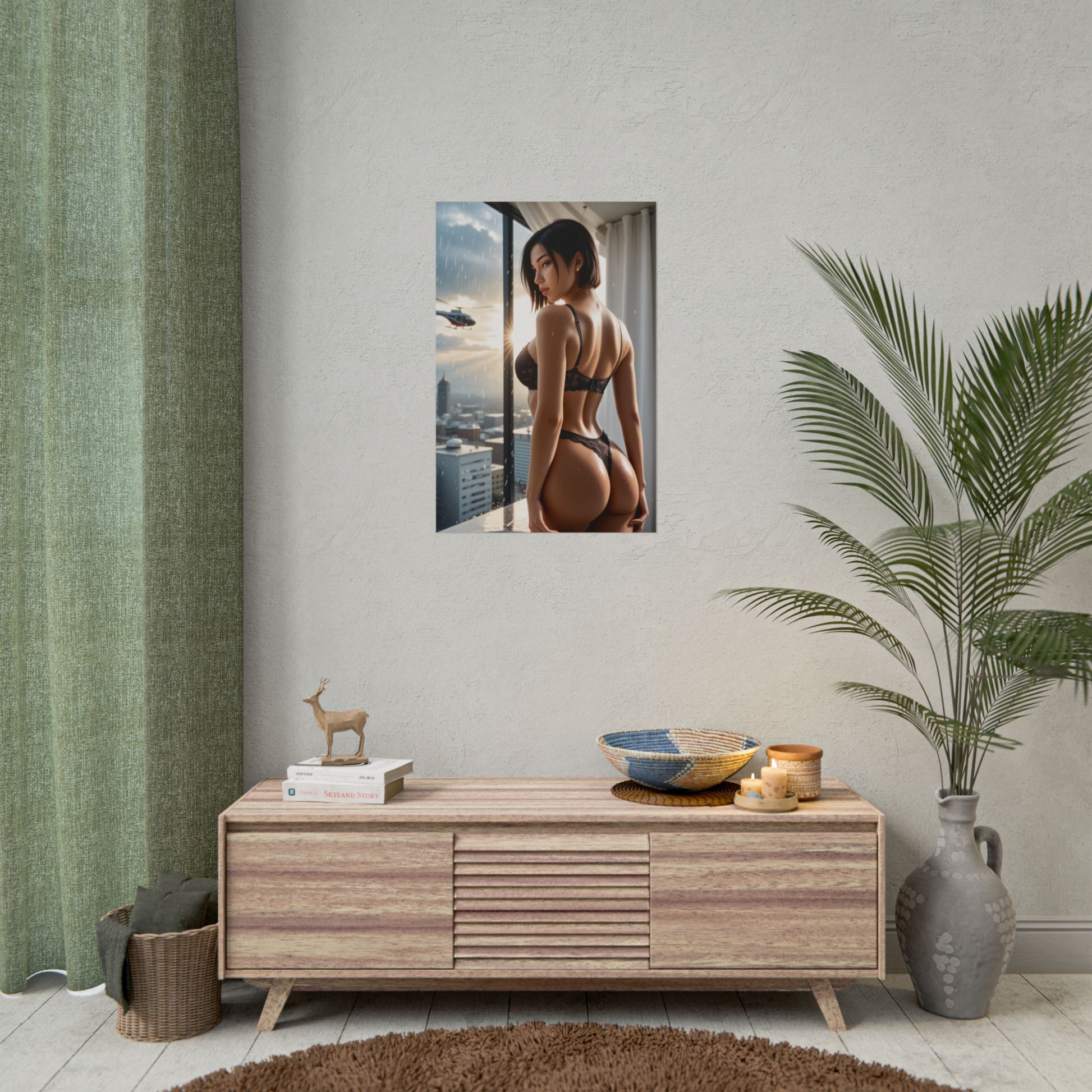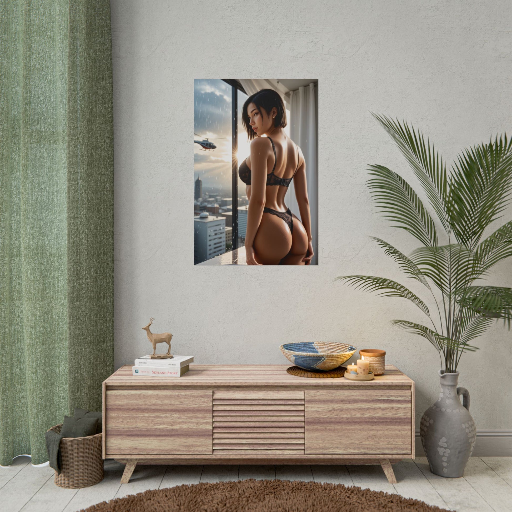 Цей кінематографічний аніме-арт зображує Аду Вонг — елегантну, впевнену та загадкову. Її червона сукня, врівноважений вираз обличчя та ледь помітна інтенсивність одночасно втілюють небезпеку та привабливість, що робить цей настінний принт у стилі вайфу приголомшливим доповненням як для шанувальників аніме, так і для шанувальників ігор.