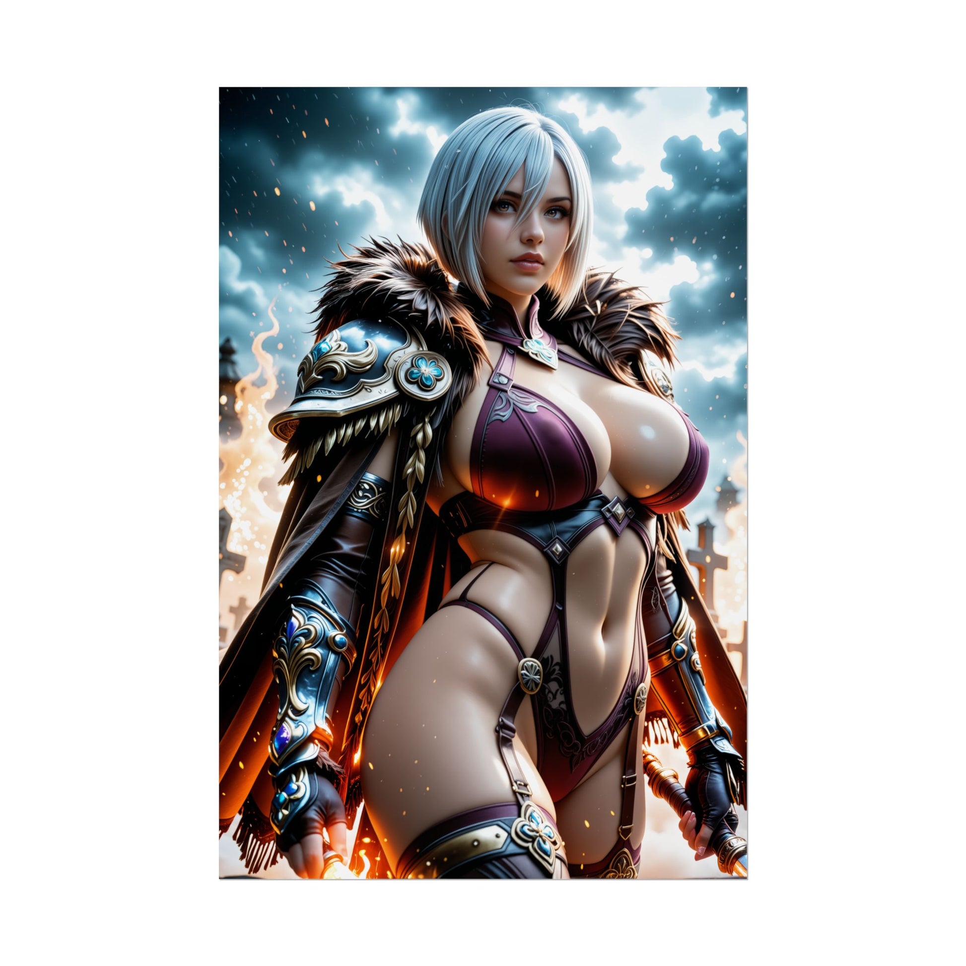 Цей елегантний аніме-арт зображує Айві Валентайн як ікону готичного фентезі — її вражаючі обладунки, розпущене волосся та королівська постать поєднують красу з силою. Приголомшливий художній принт у стилі вайфу для шанувальників файтингів та естетики фентезійного аніме.