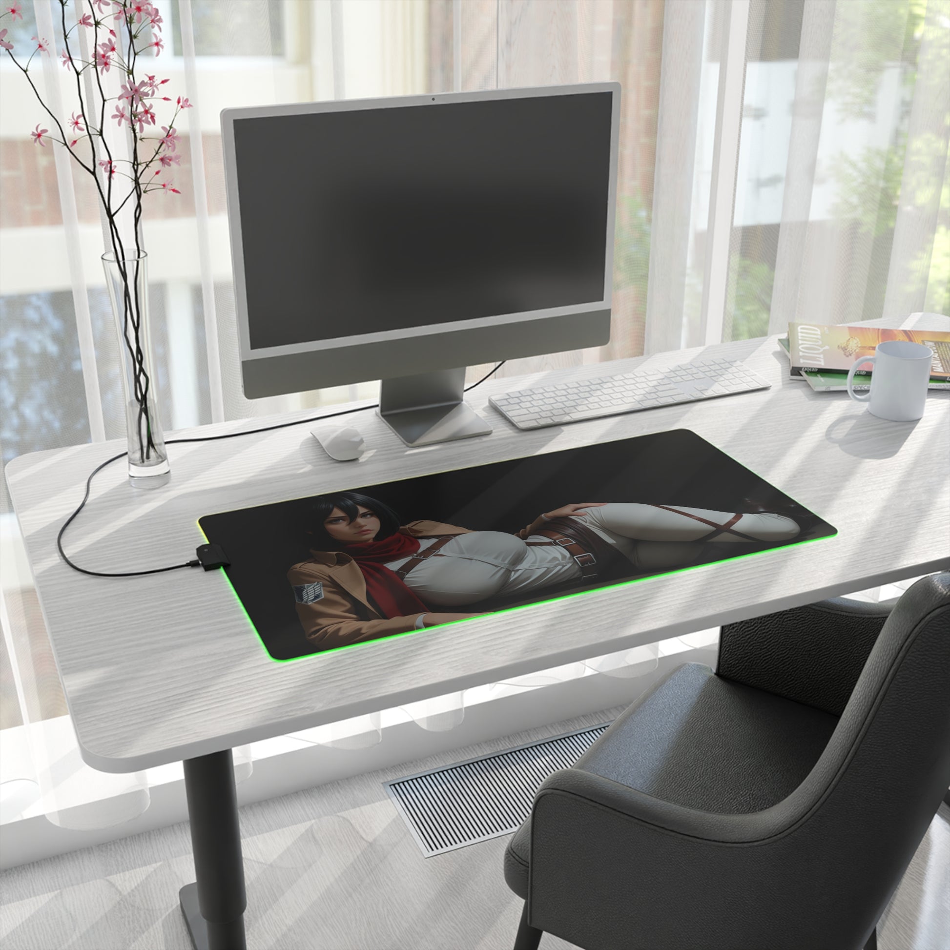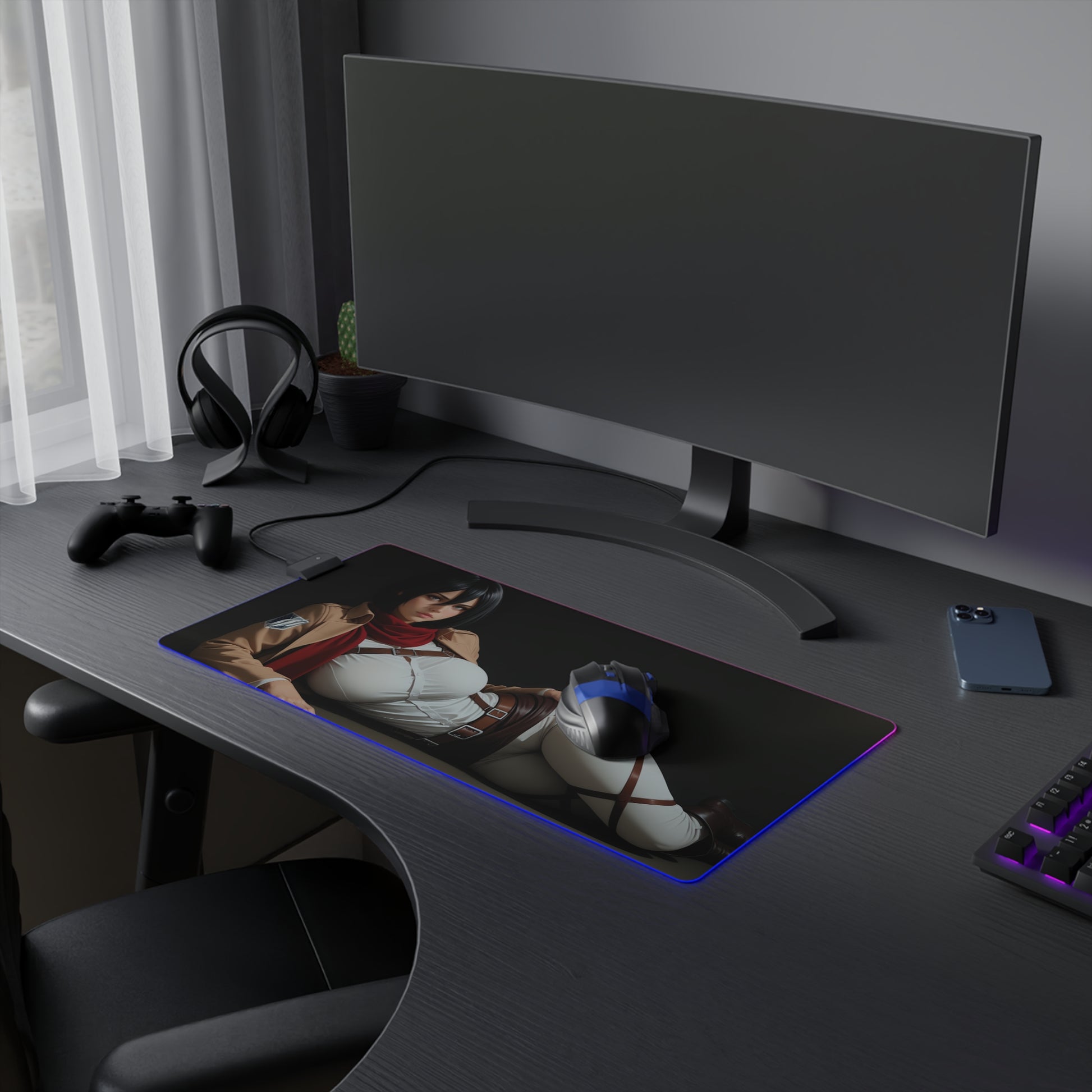 Килимок для столу Mikasa Ackerman – світлодіодний RGB-підсвітлювальний килимок, ігрова конфігурація для дівчат з аніме Waifu