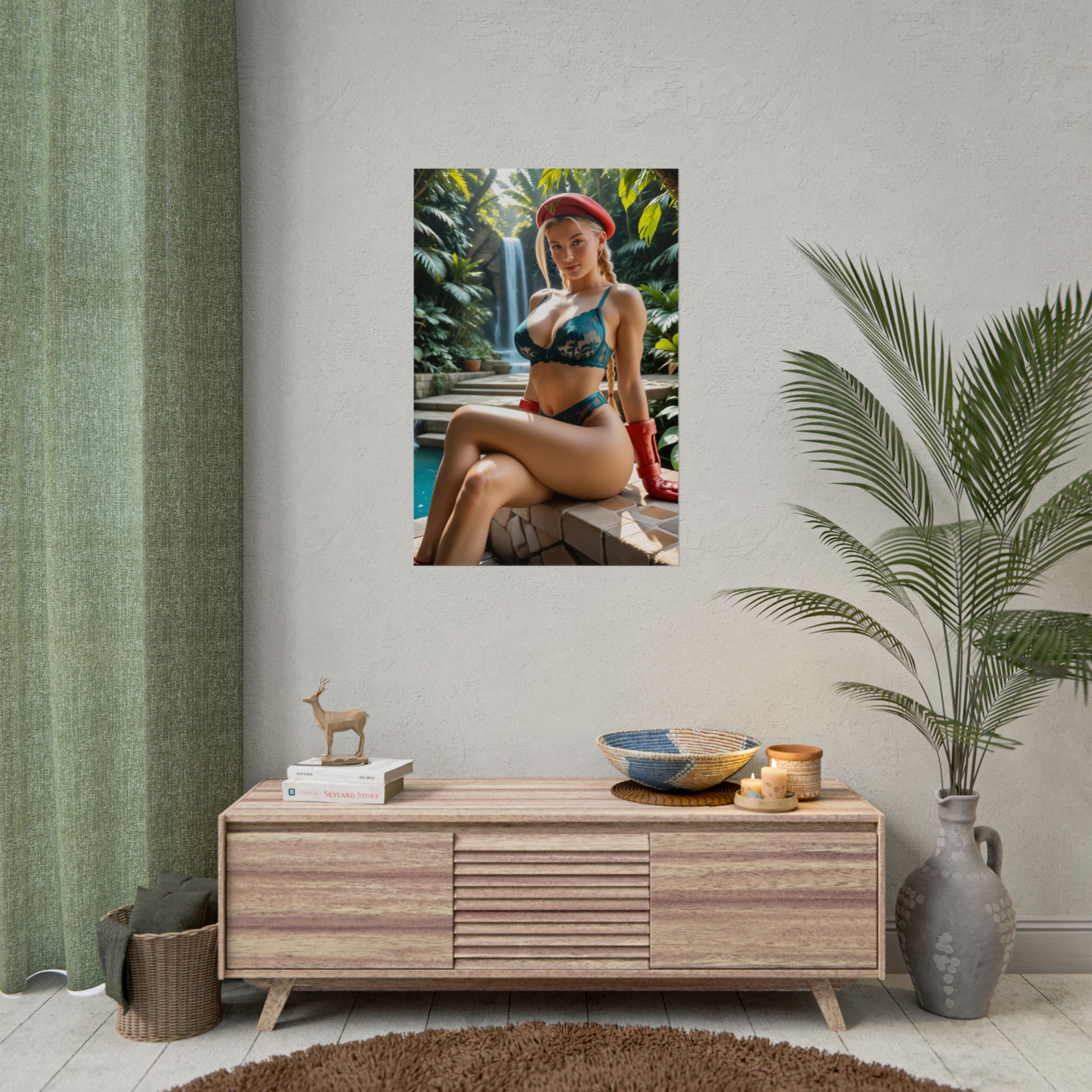 Цей кінематографічний аніме-арт зображує Кеммі Вайт — безстрашну бійницю, відому своєю силою, спритністю та вражаючою красою. Її світле волосся, рішучий погляд та впевнена стійка ідеально поєднують елегантність та силу, що робить цей настінний принт у стилі вайфу ідеальним як для шанувальників аніме, так і для шанувальників ігор.
