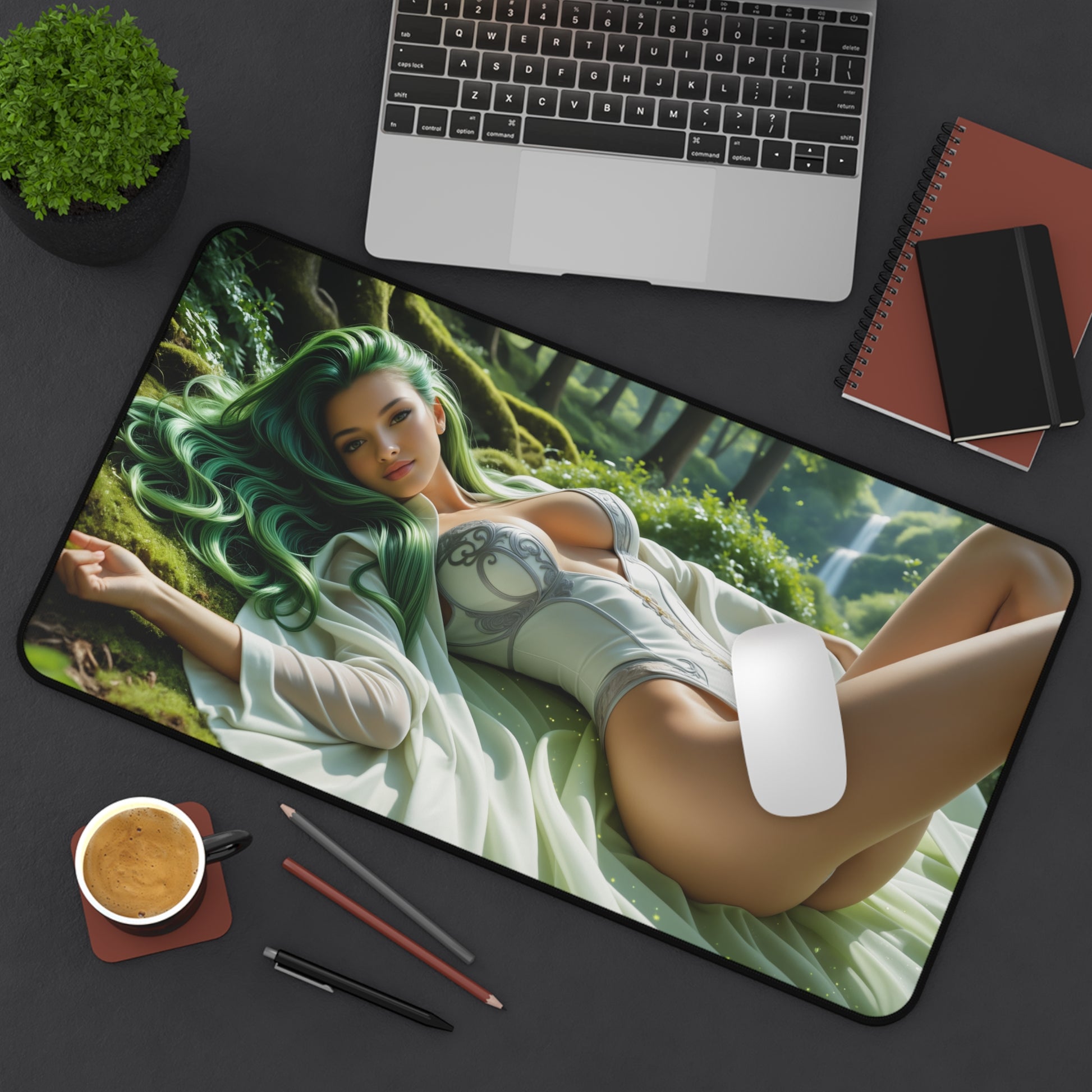 Килимок для миші CC додасть таємничості та елегантності вашій обстановці. Цей преміальний килимок для миші має високоякісні ілюстрації в стилі аніме із зеленоволосим безсмертним з мультфільму "Код Гіас" — спокійний, витончений та потужний. Розроблений з гладкою ковзною поверхнею, простроченими краями та нековзною основою, він ідеально підходить для ігор, роботи або демонстрації.