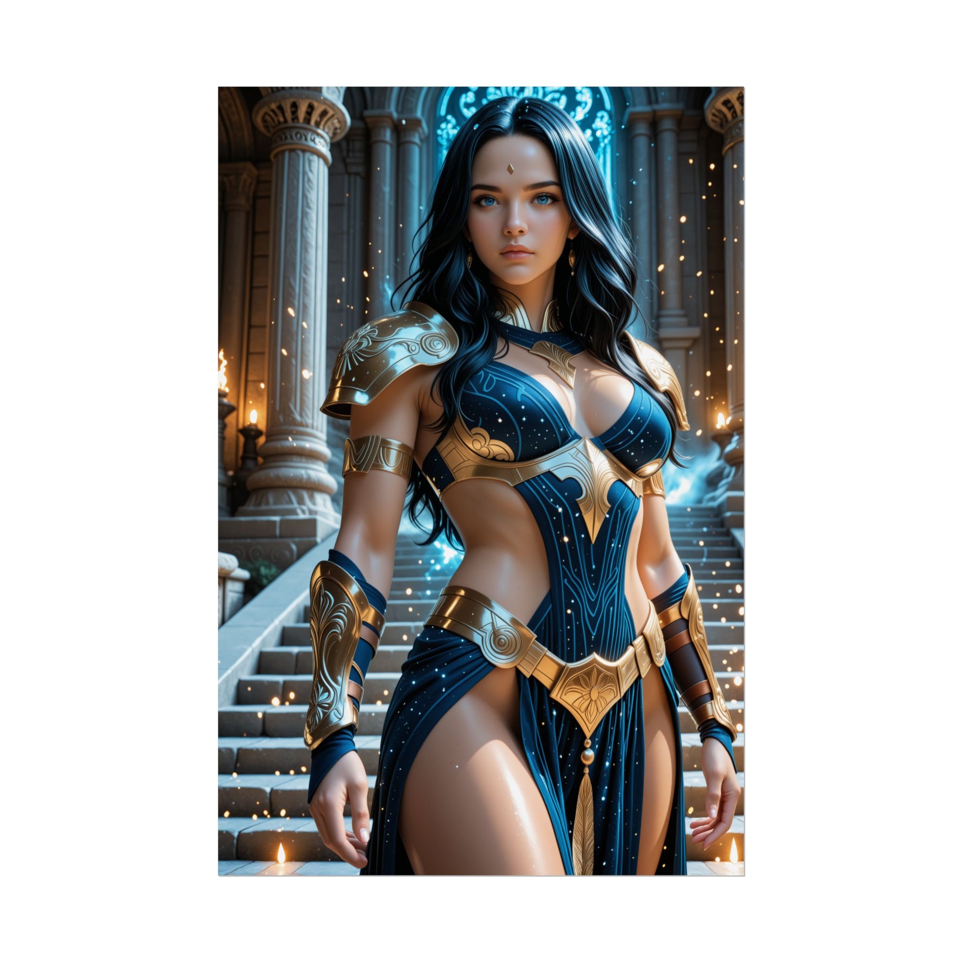 На цій роботі зображена Донна Трой — могутня, велична та люта. Зі своїми срібними обладунками, довгим темним волоссям та непохитною стійкою вона привносить силу амазонок та міфічну присутність на вашу стіну. Ідеально підходить для шанувальників легендарних героїнь та декору з фентезійними воїнами.