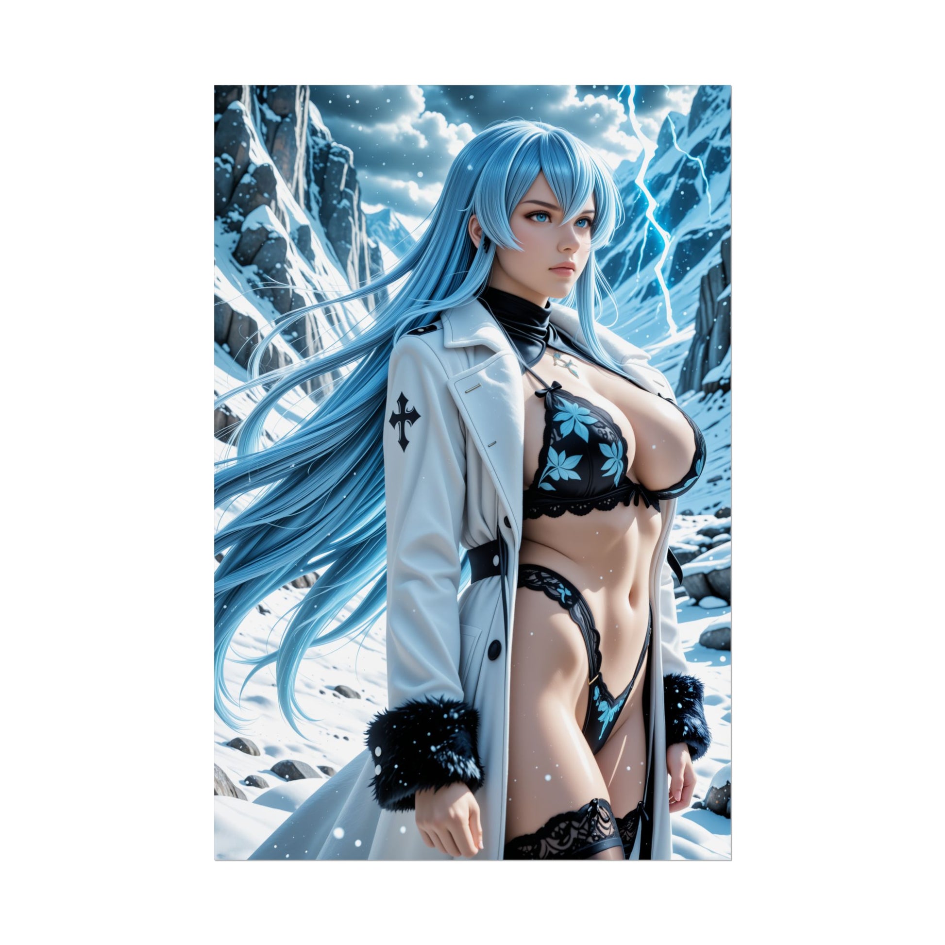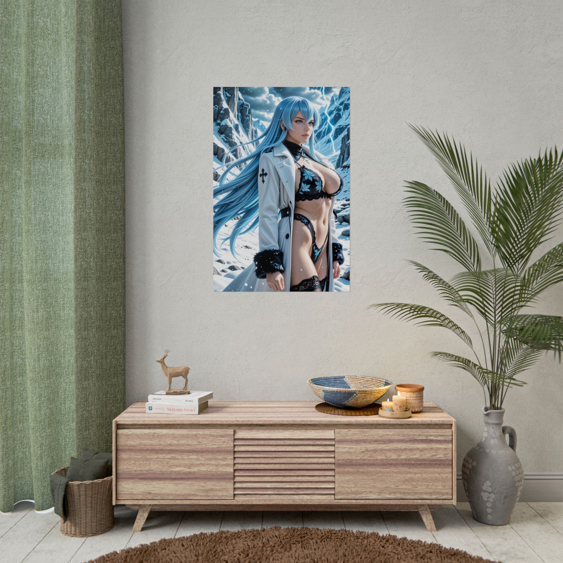 Цей кінематографічний аніме-арт зображує Есдес — потужну, елегантну та моторошно зібрану. Її крижана постать, військовий стиль та впевнена постава випромінюють авторитет та привабливість, що робить цей фентезійний настінний арт у стилі вайфу сміливим доповненням до кімнати будь-якого шанувальника аніме чи ігрового простору.