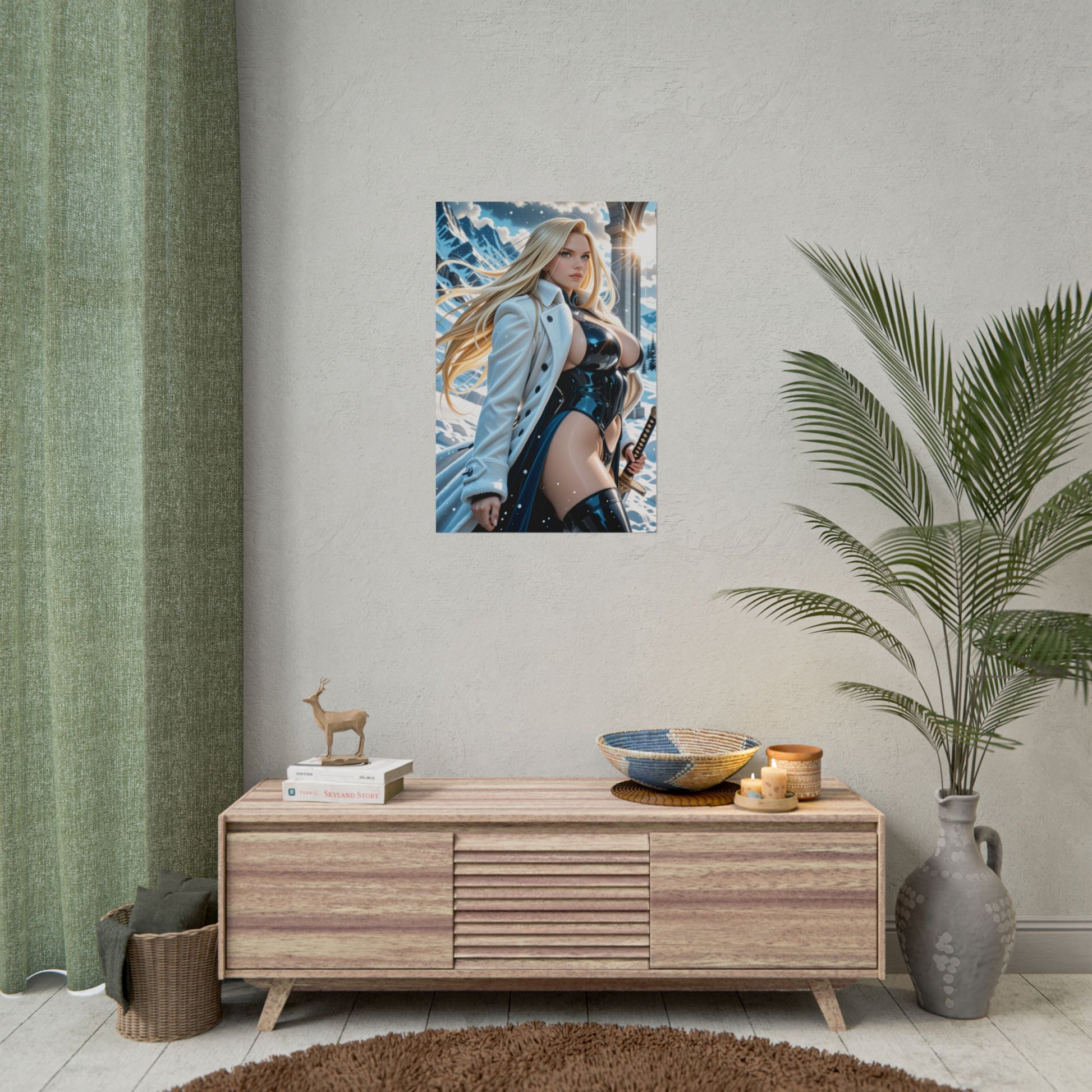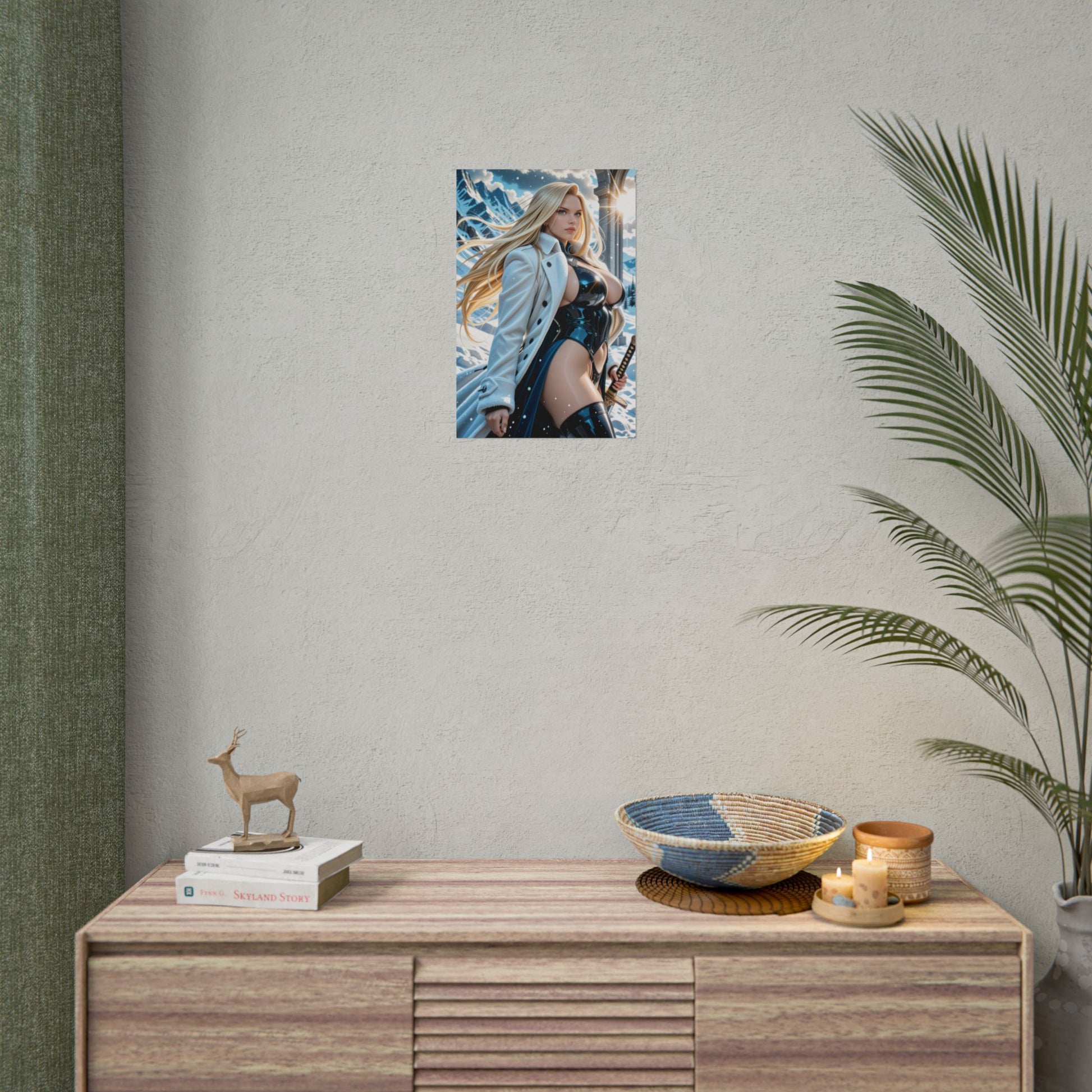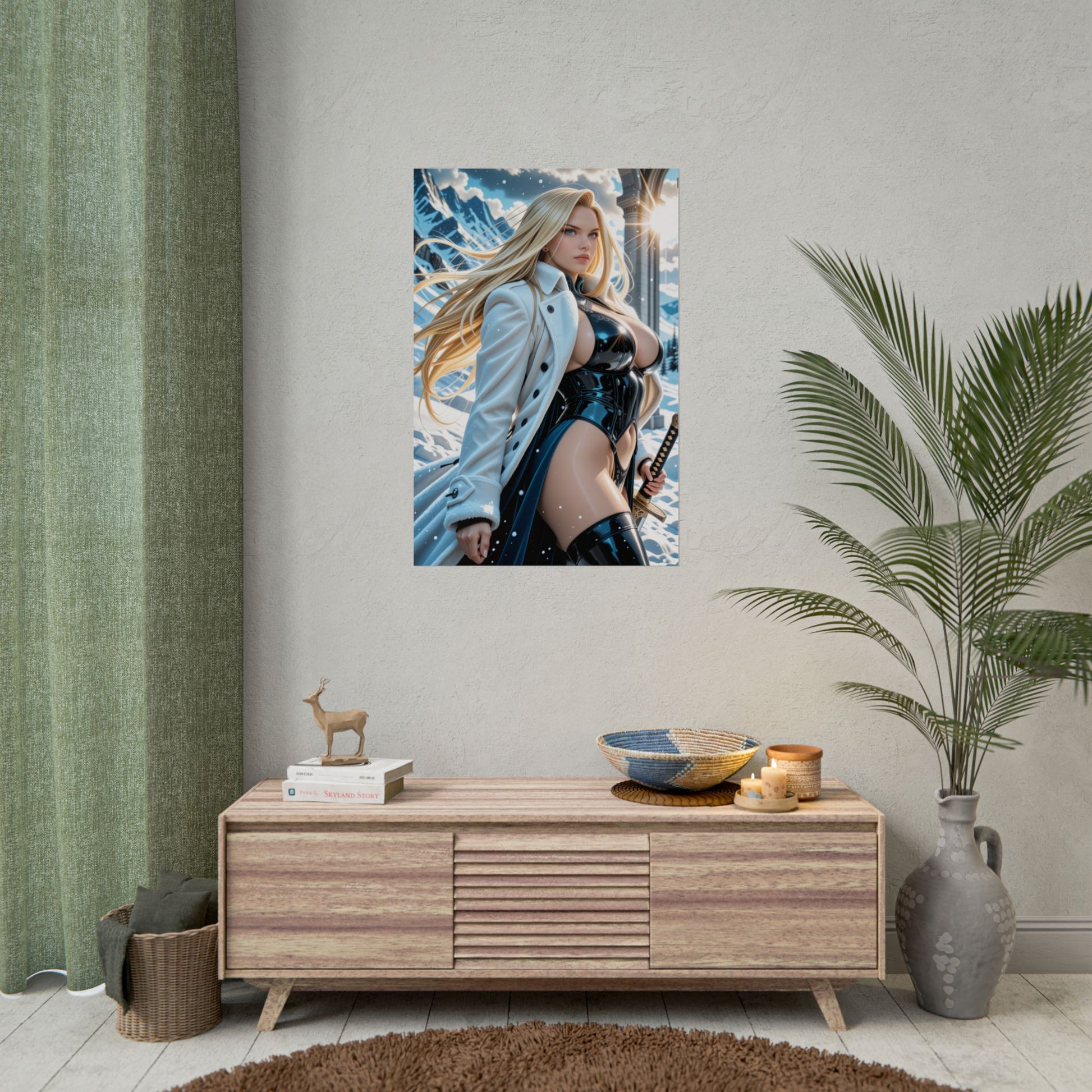Цей кінематографічний принт у стилі аніме зображує Олів'є Міру Армстронг — люту, величну та незламно сильну. Її військовий плащ, крижаний погляд та владна стійка роблять цей фентезійний настінний малюнок у стилі вайфу ідеальним для шанувальників могутніх героїнь та декору в стилі аніме.