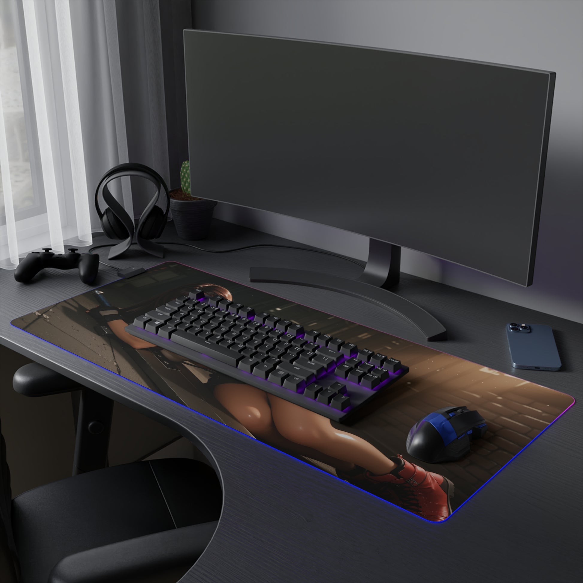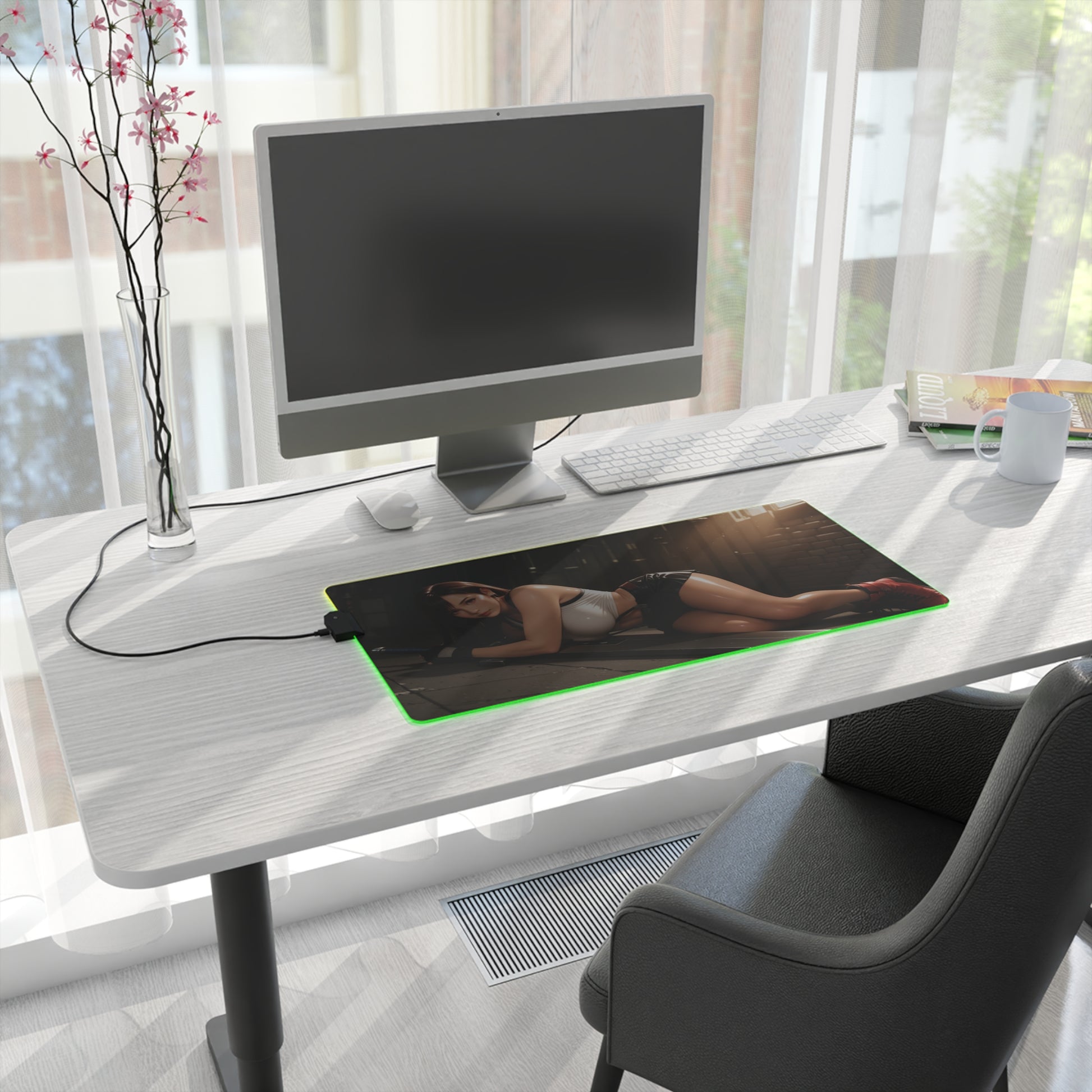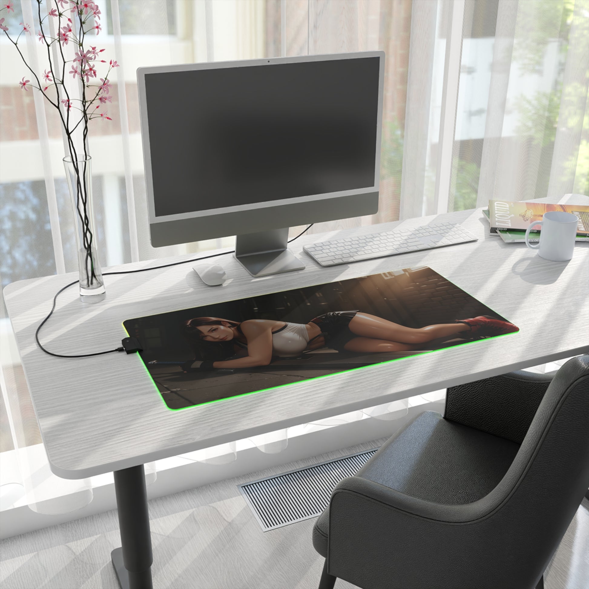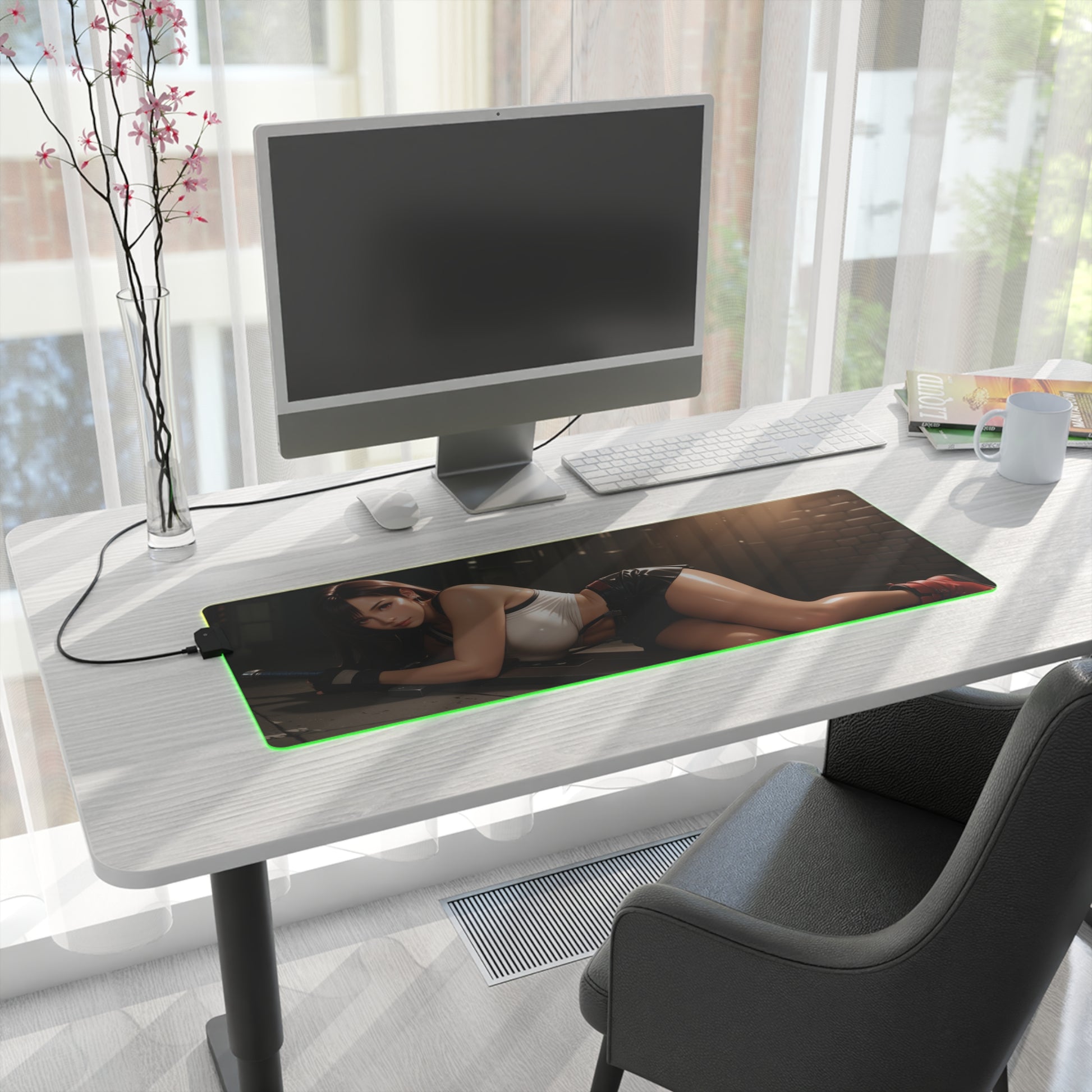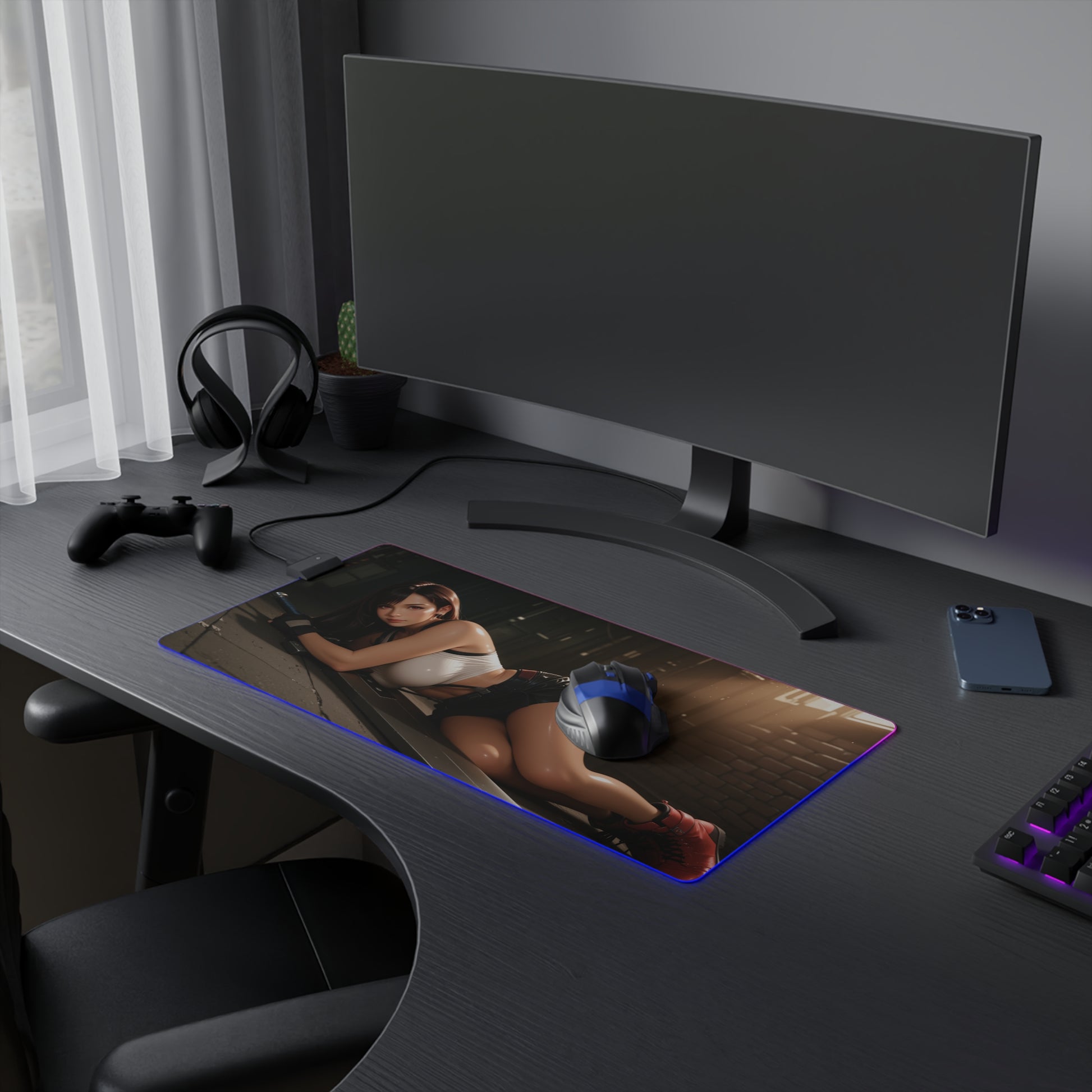 Проявіть силу та впевненість за допомогою цього килимка для столу зі світлодіодним RGB-підсвічуванням, на якому зображена Тіфа Локхарт — улюблена вайфу, натхненна світом Final Fantasy . Її спокійна рішучість та спортивна чарівність додадуть потужної, але водночас витонченої енергії у ваш ігровий або творчий робочий простір.