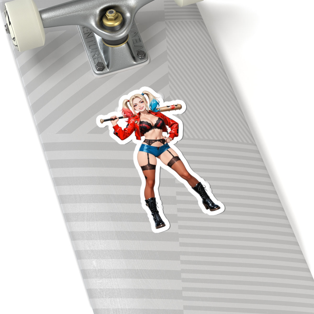 Наліпка Harley Queen розроблена для шанувальників, які люблять сміливі, грайливі та бунтівні малюнки персонажів. Виготовлена зі 100% міцного вінілу , ця наліпка має глянсове, яскраве покриття та міцний клей, який надійно тримається на будь-якій гладкій поверхні в приміщенні.