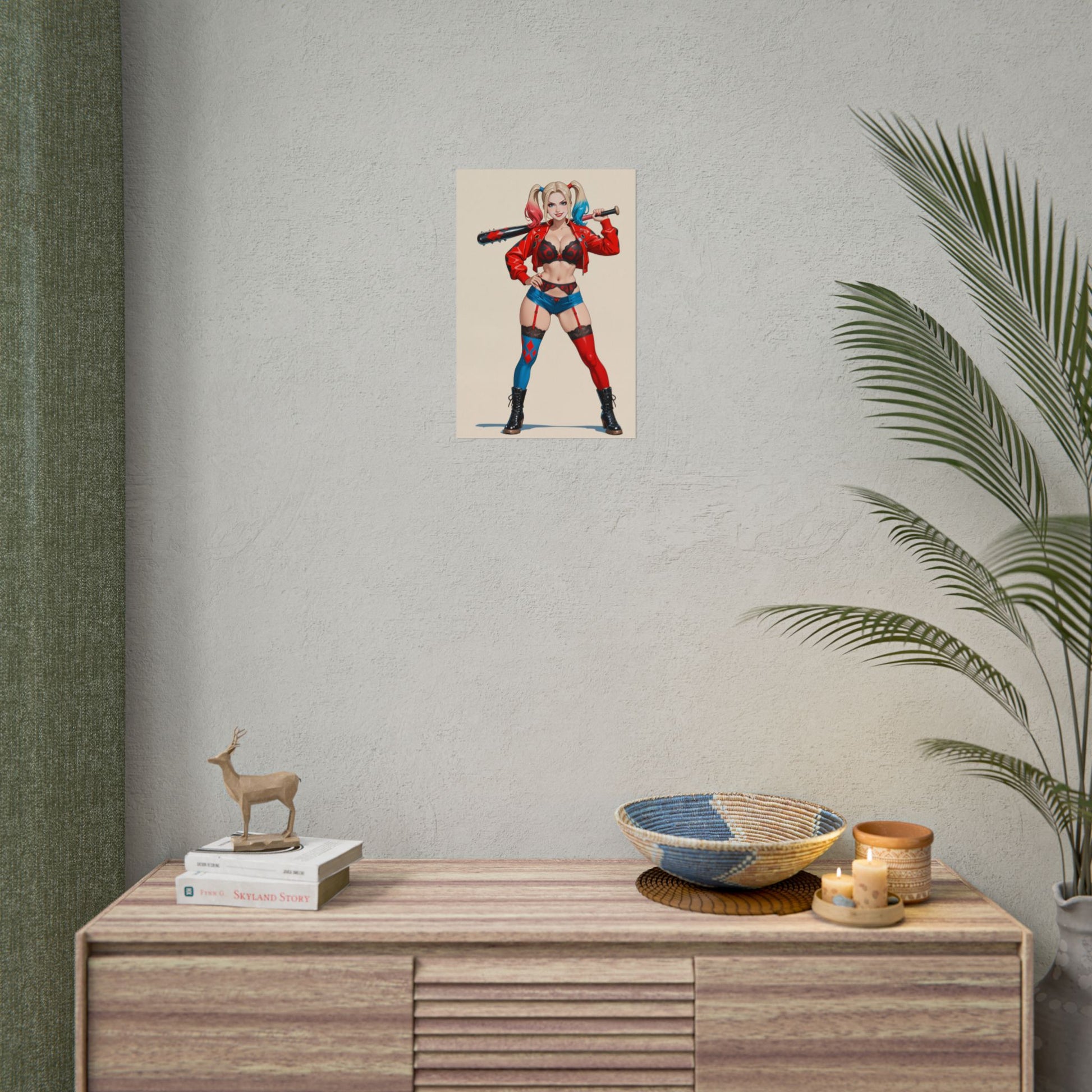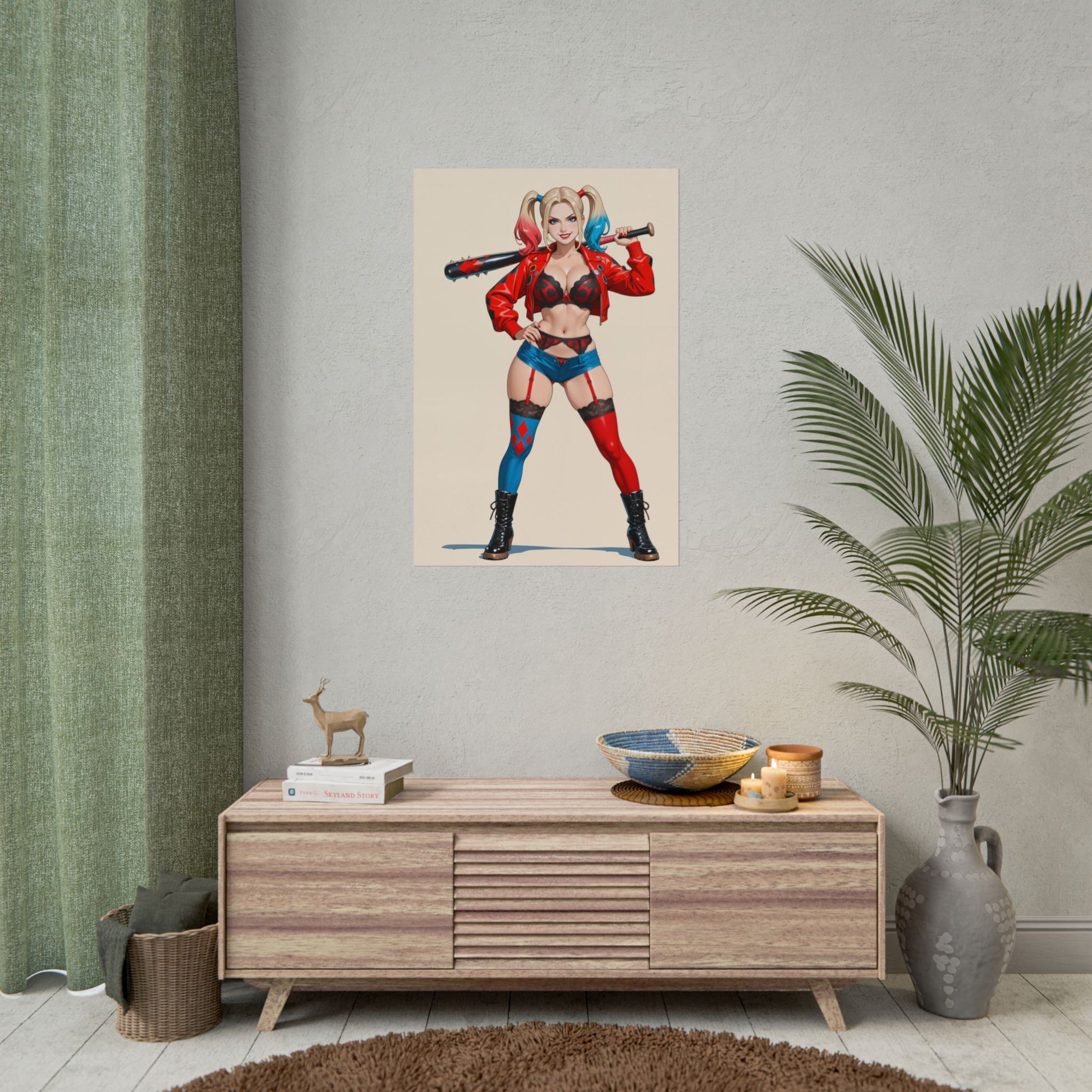 Цей кінематографічний аніме-арт переосмислює Харлі Квінн — грайливу, сміливу та неперевершено бешкетну. Її червоно-чорний одяг, впевнена посмішка та бунтівна енергія роблять цей настінний принт у стилі вайфу яскравим елементом вираження для шанувальників аніме, коміксів та геймерів.