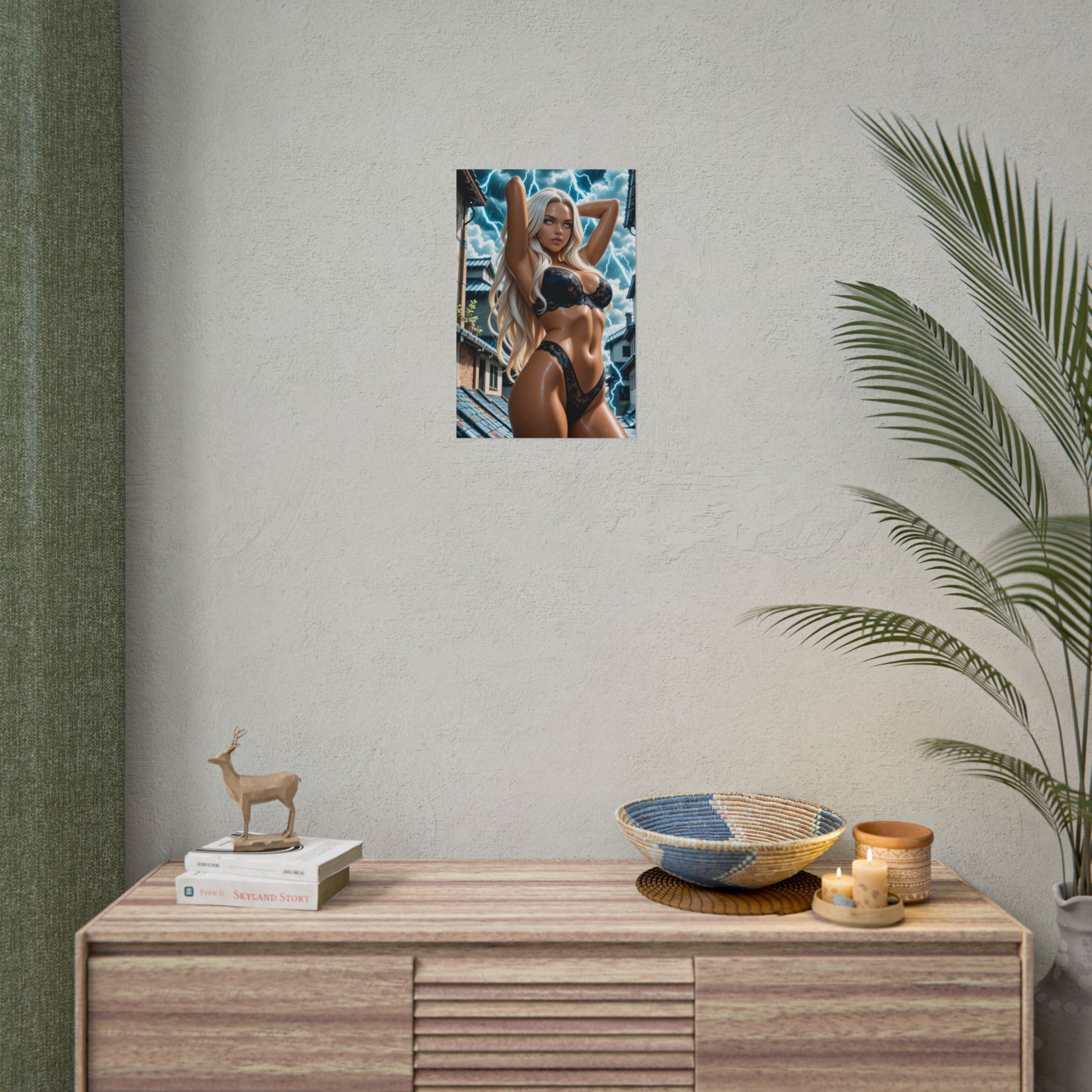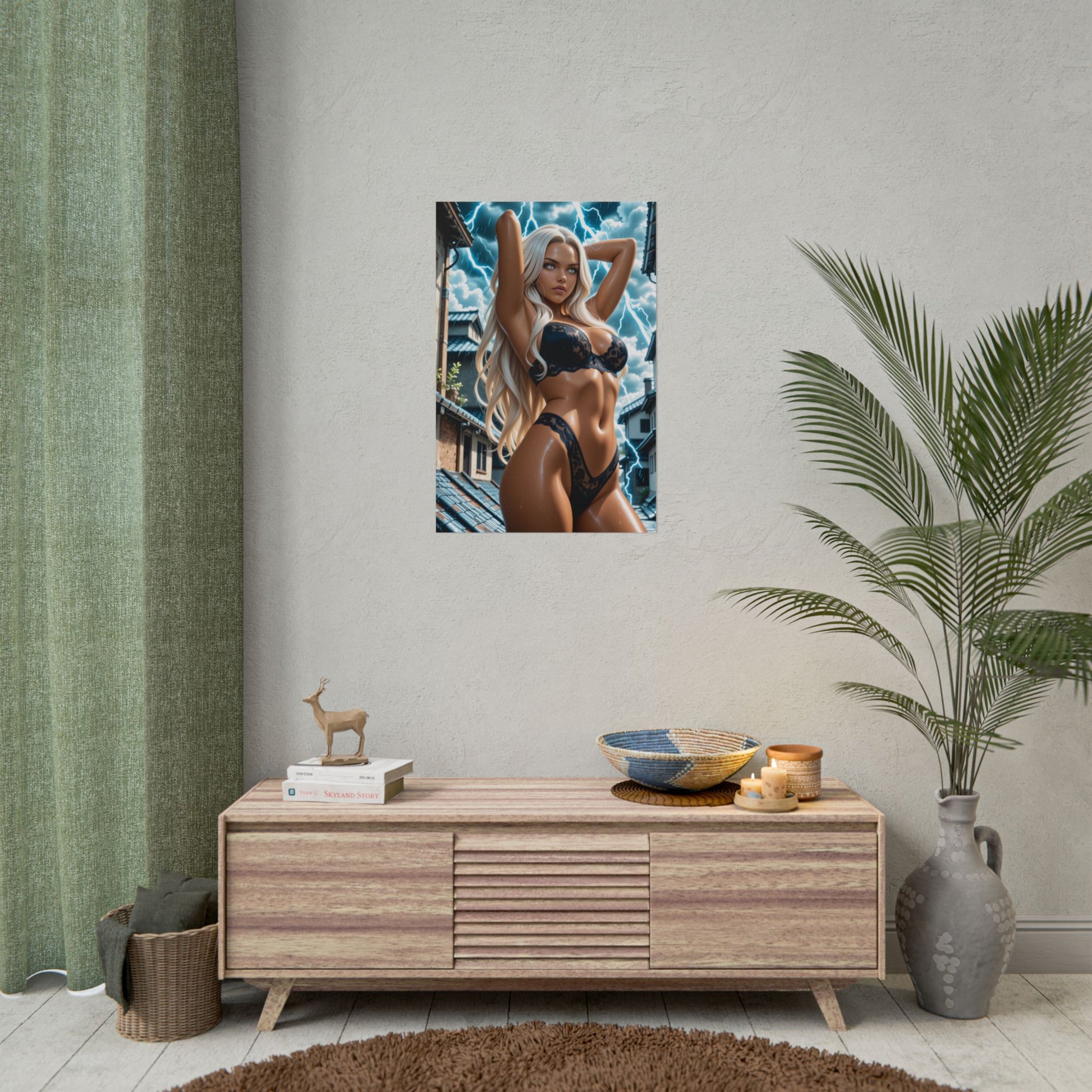 У цьому драматичному творі мистецтва Шторм пронизує небо божественною силою. Оточена блискавками та силою, вона є символом рівноваги та краси — ідеальна настінна прикраса для шанувальників легендарних героїв та фентезійної естетики.