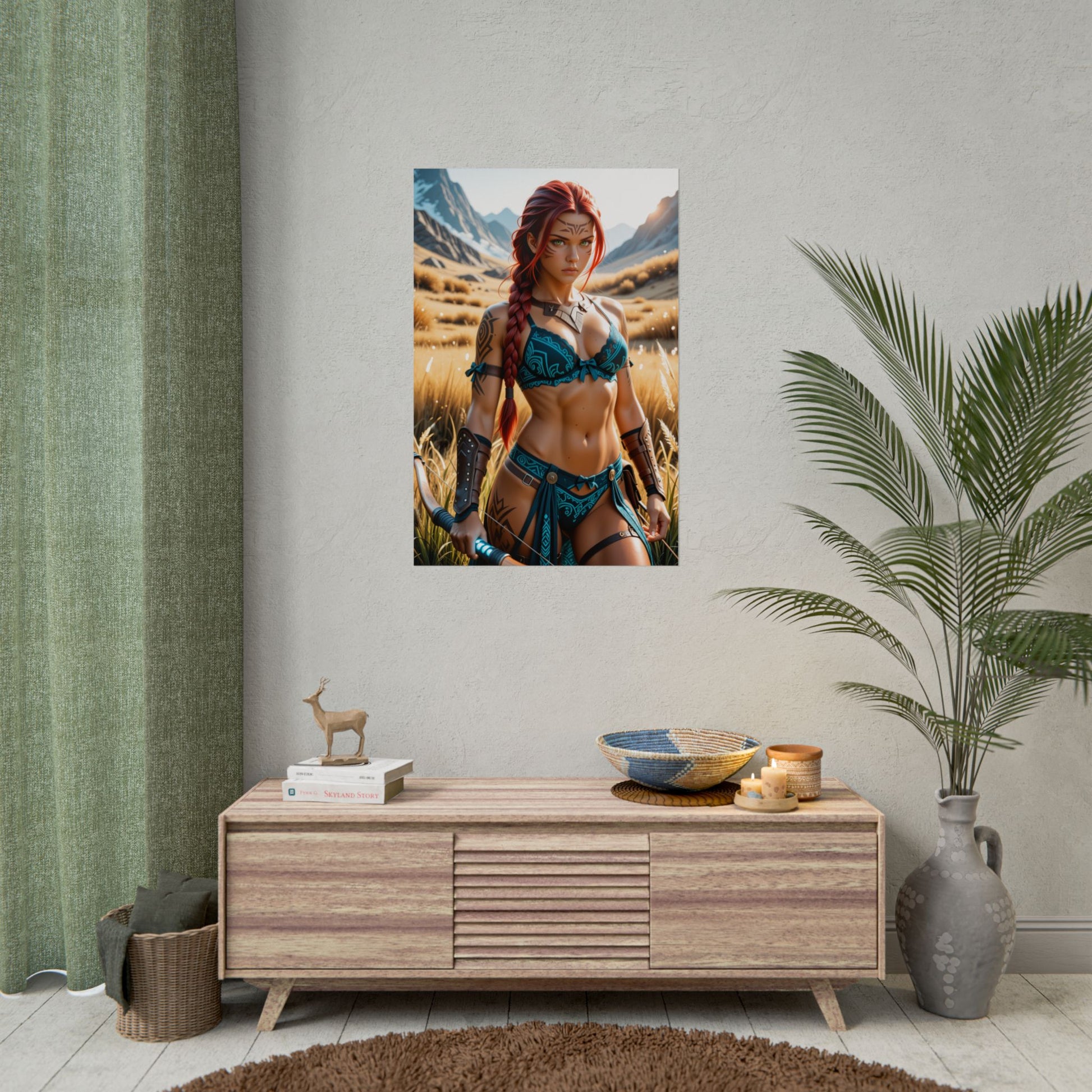 Героїчний настінний художній плакат | Принт Aloy для спальні або обстановки у фентезійному геймерському стилі