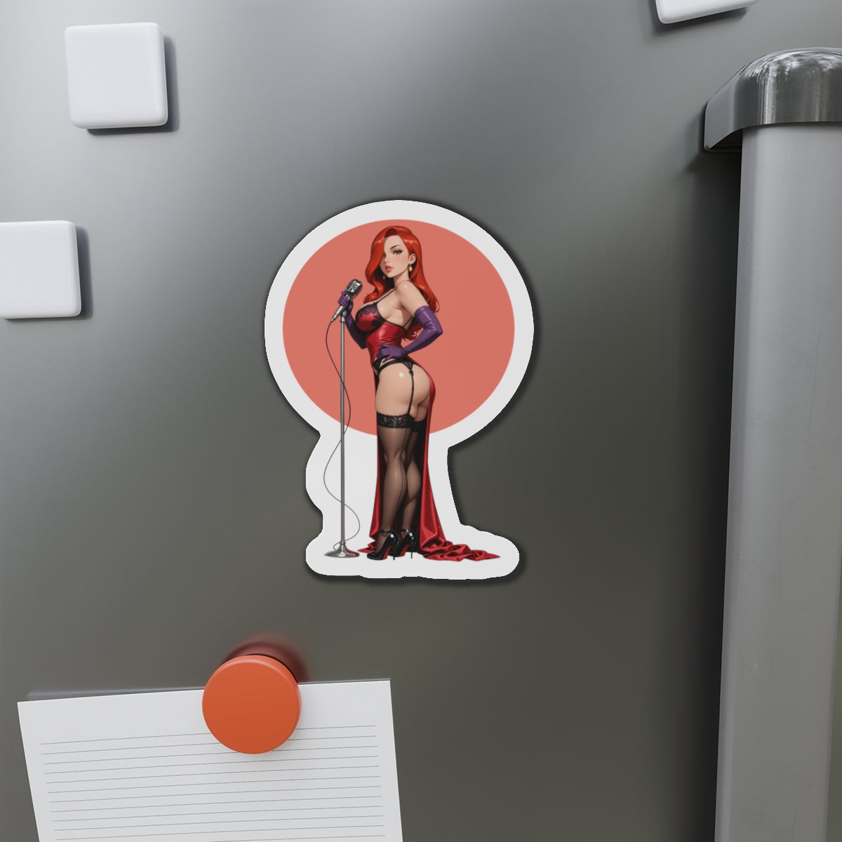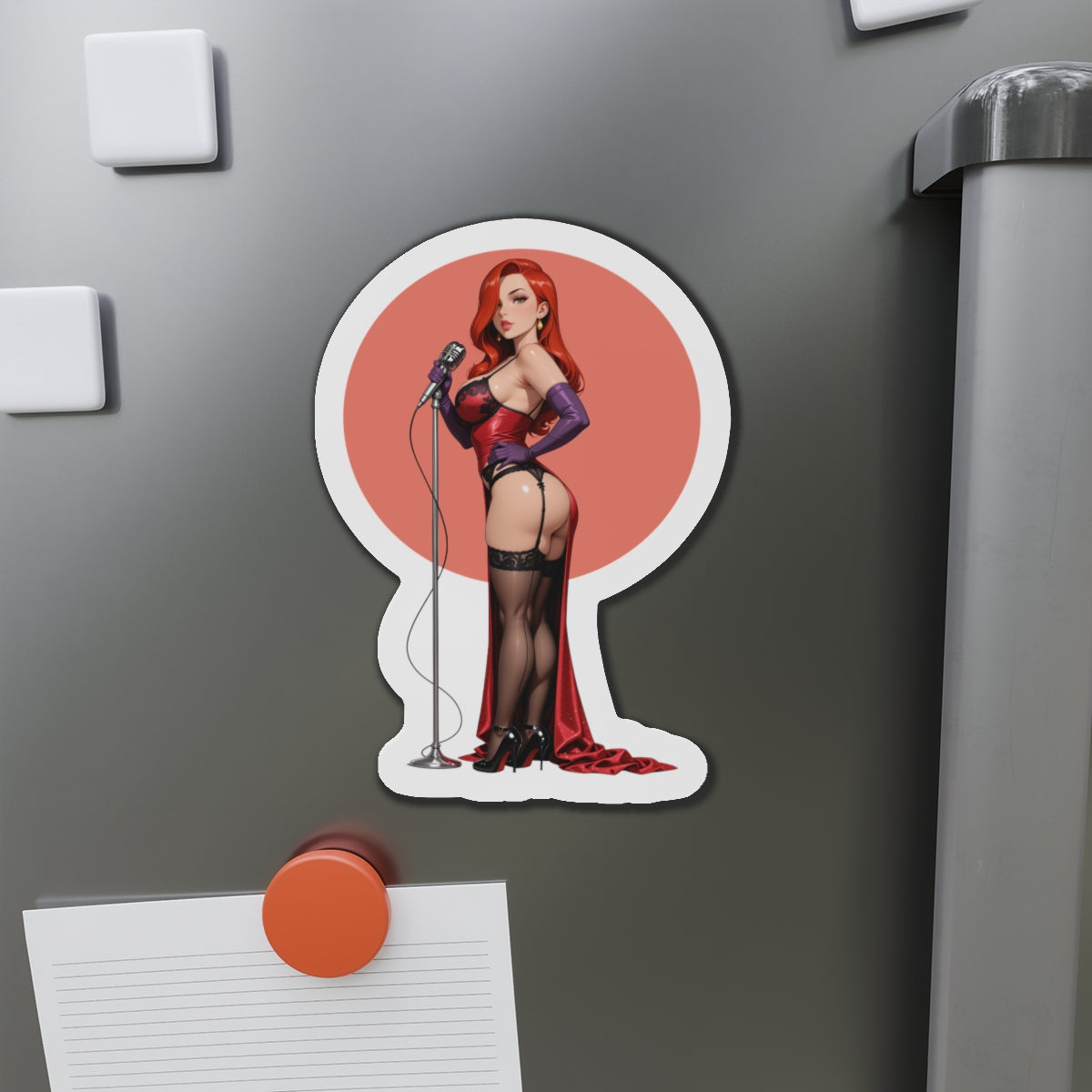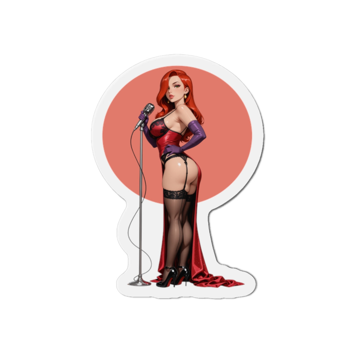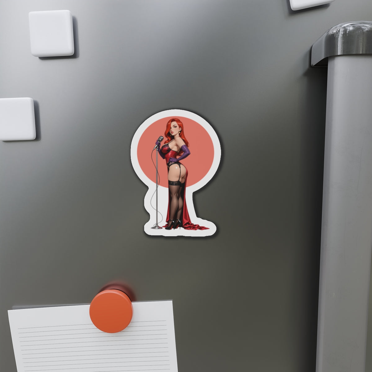 Магніт із зображенням Джесіки Реббіт — вініловий магніт преміум-класу з вирізаним зображенням культової красуні в червоній сукні в яскравому стилі аніме. Ідеально підходить для шанувальників, які люблять сміливі вигини, яскраві кольори та довговічне мистецтво з персонажами для холодильників, шафок, ігрових установок, сталевих шаф та офісних дошок.