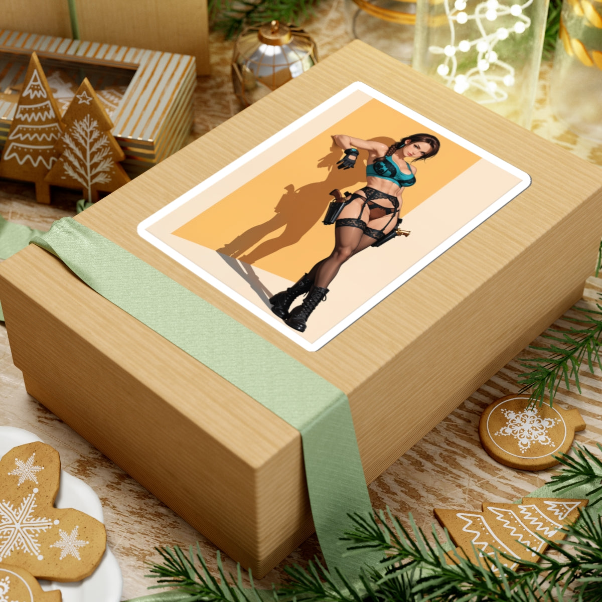 Наліпка з Ларою Крофт, створена для шанувальників, які бажають чистих, динамічних та високоякісних зображень легендарної мисливиці за скарбами. Надрукована на 100% міцному вінілі , вона має глянсове, яскраве покриття та міцний клей, що надійно тримається на будь-якій гладкій поверхні в приміщенні.