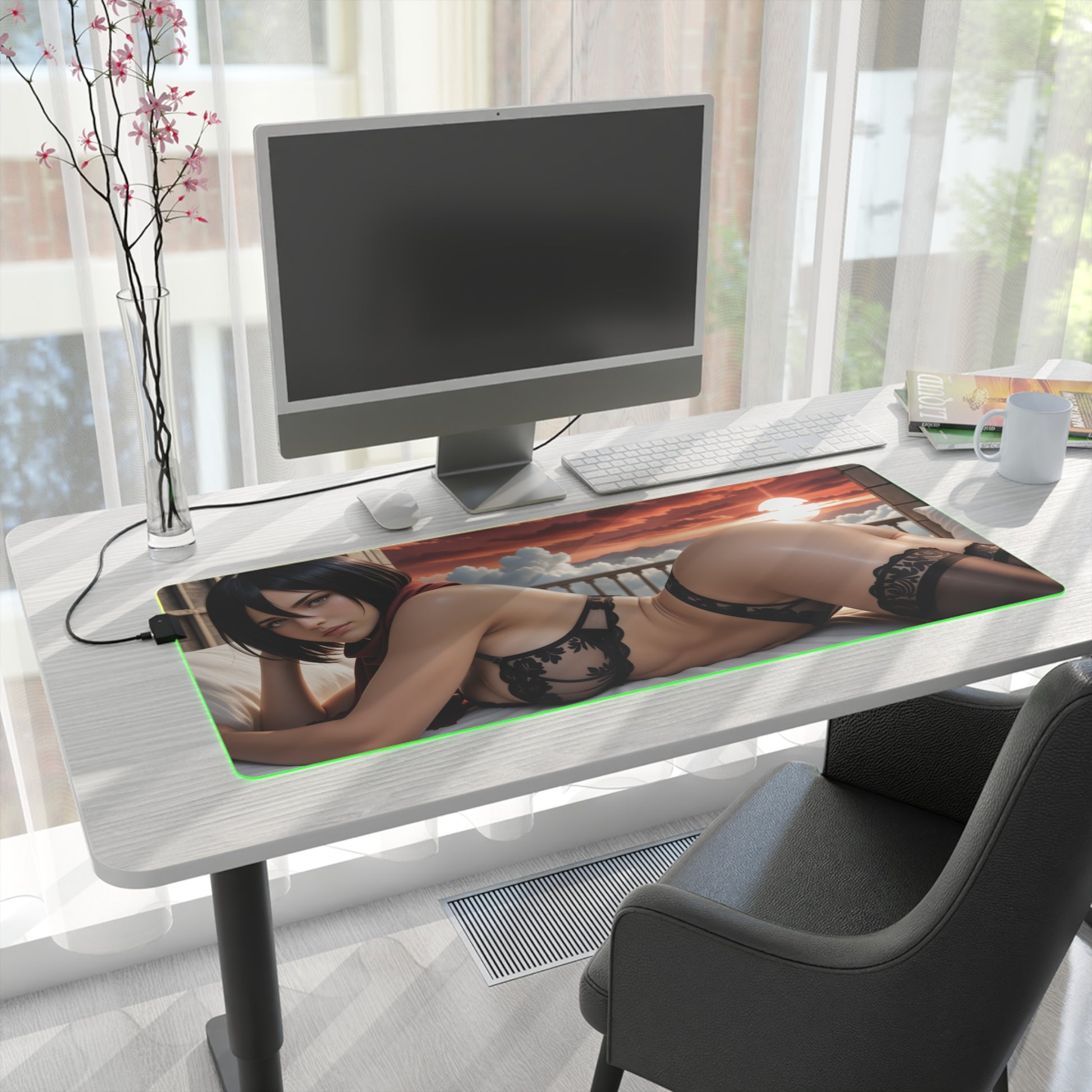 Mikasa Ackerman Desk Mat – LED RGB Pad, Elegant Waifu Anime Girl Setup