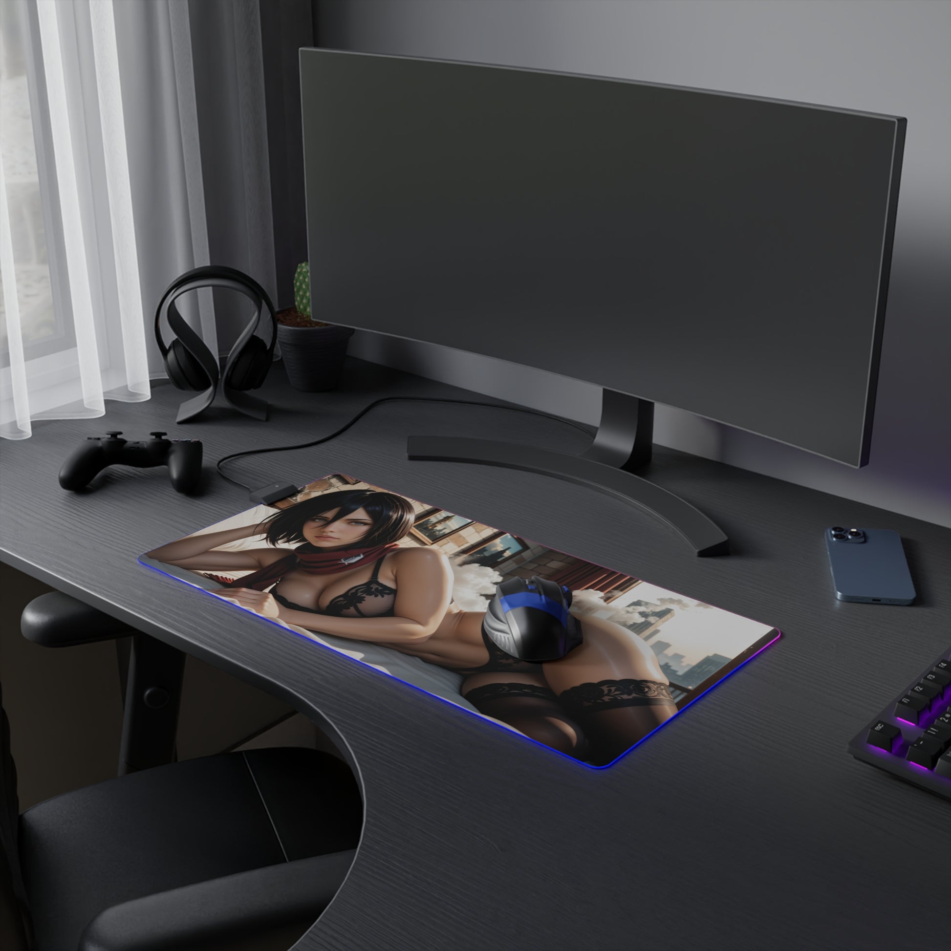 Mikasa Ackerman Desk Mat – LED RGB Pad, Waifu Anime Girl Gaming Setup