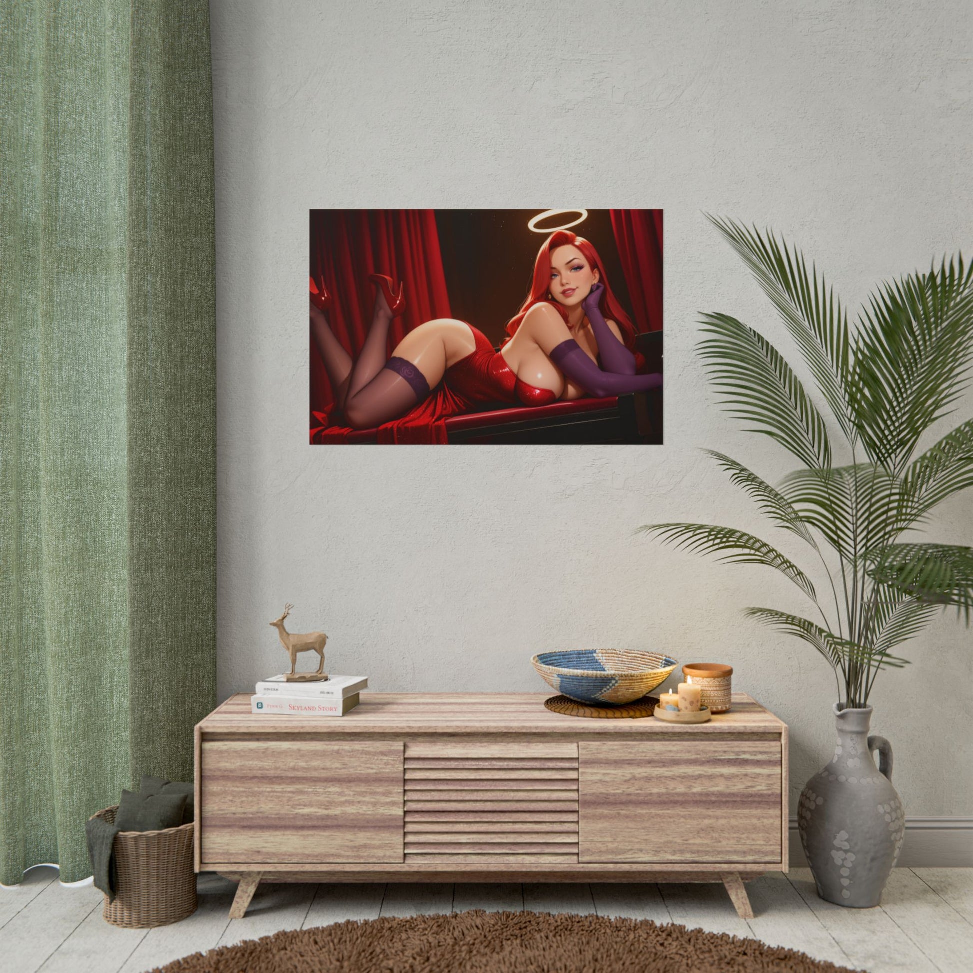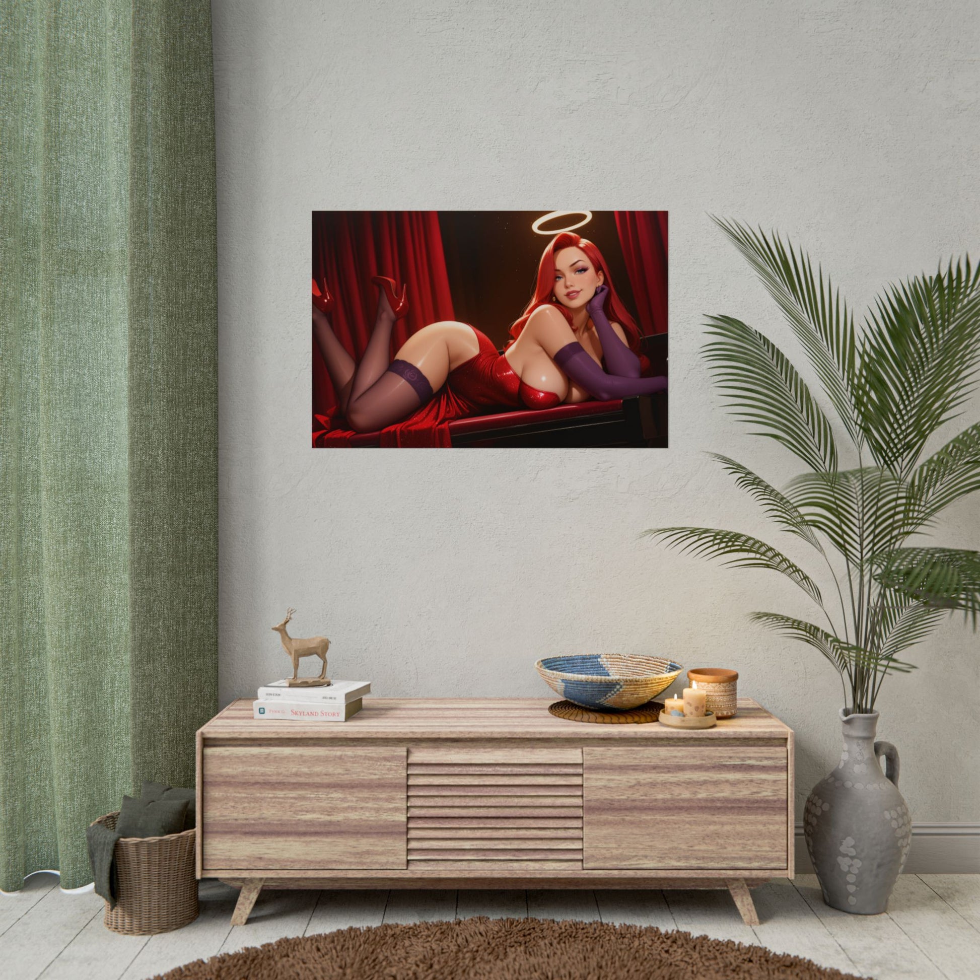 Цей витвір мистецтва в стилі аніме зображує Джесіку Реббіт — гламурну, сміливу та незабутню. Завдяки її культовій червоній сукні, чуттєвій позі та позачасовій чарівності, цей настінний малюнок пін-ап вайфу додає вінтажного шарму та жвавої елегантності будь-якому колекційному простору чи спальні.