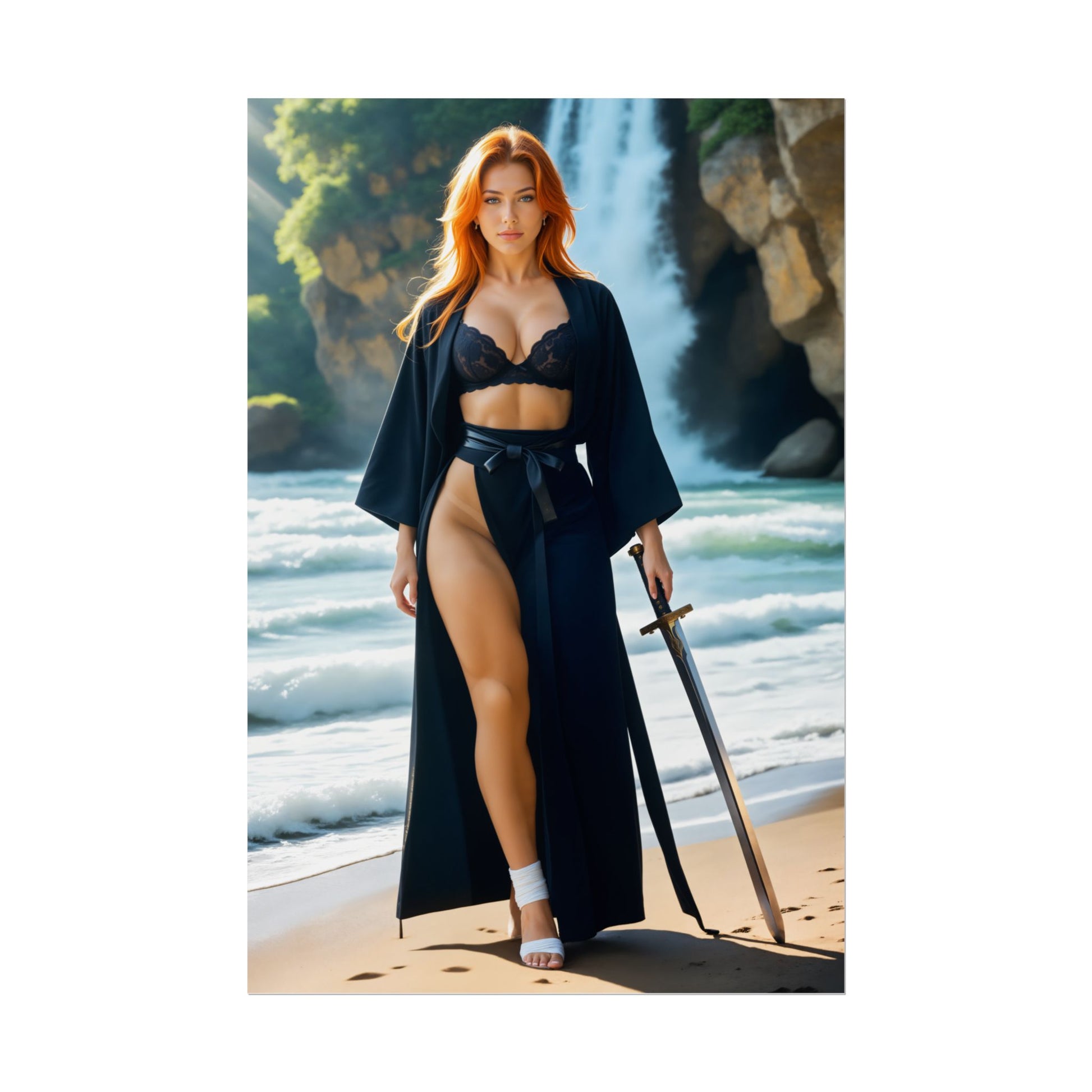 Цей кінематографічний аніме-арт зображує Цунаде — легендарну цілительку та воїна з неперевершеною силою та грацією. Її світле волосся, впевнений вираз обличчя та владна постать випромінюють красу та міць, що робить цей настінний принт у стилі вайфу ідеальним доповненням для любителів аніме та фентезі.