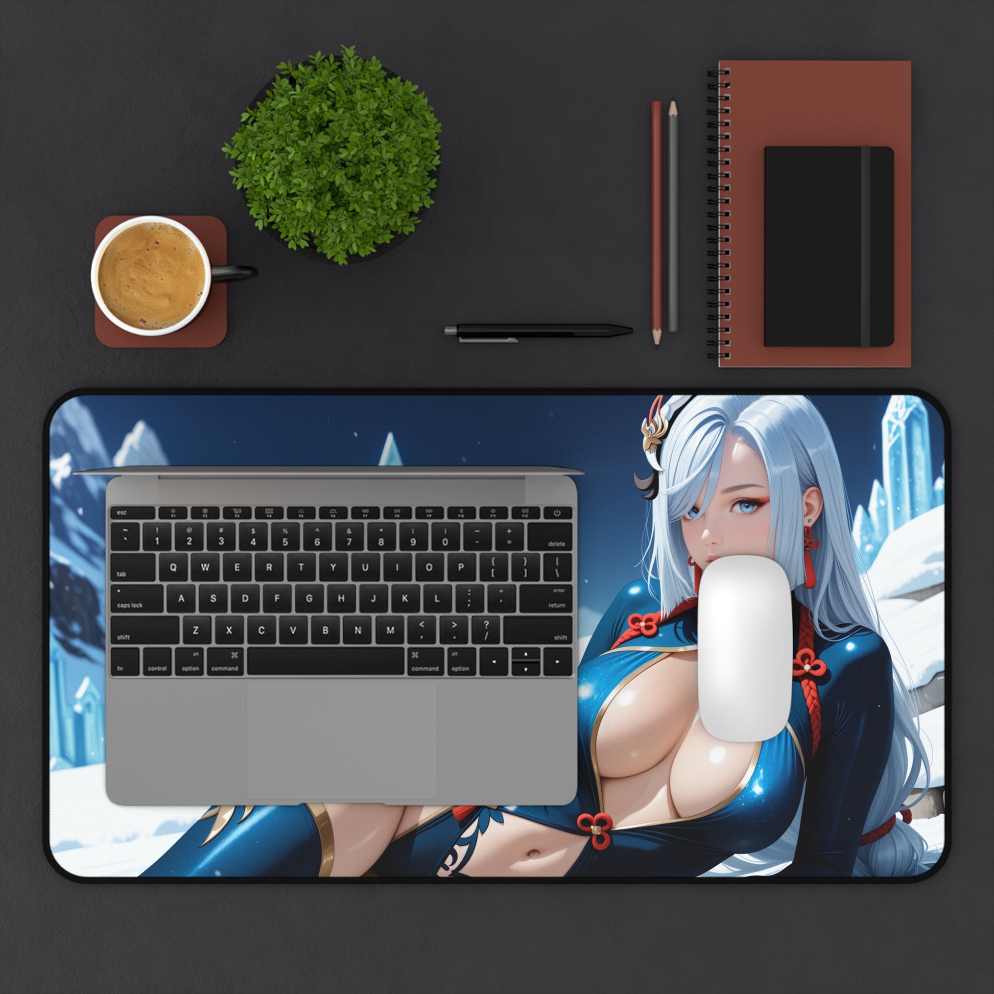 Килимок для столу Shenhe, килимок для миші Genshin Impact Heroine, елегантний ігровий стіл для аніме