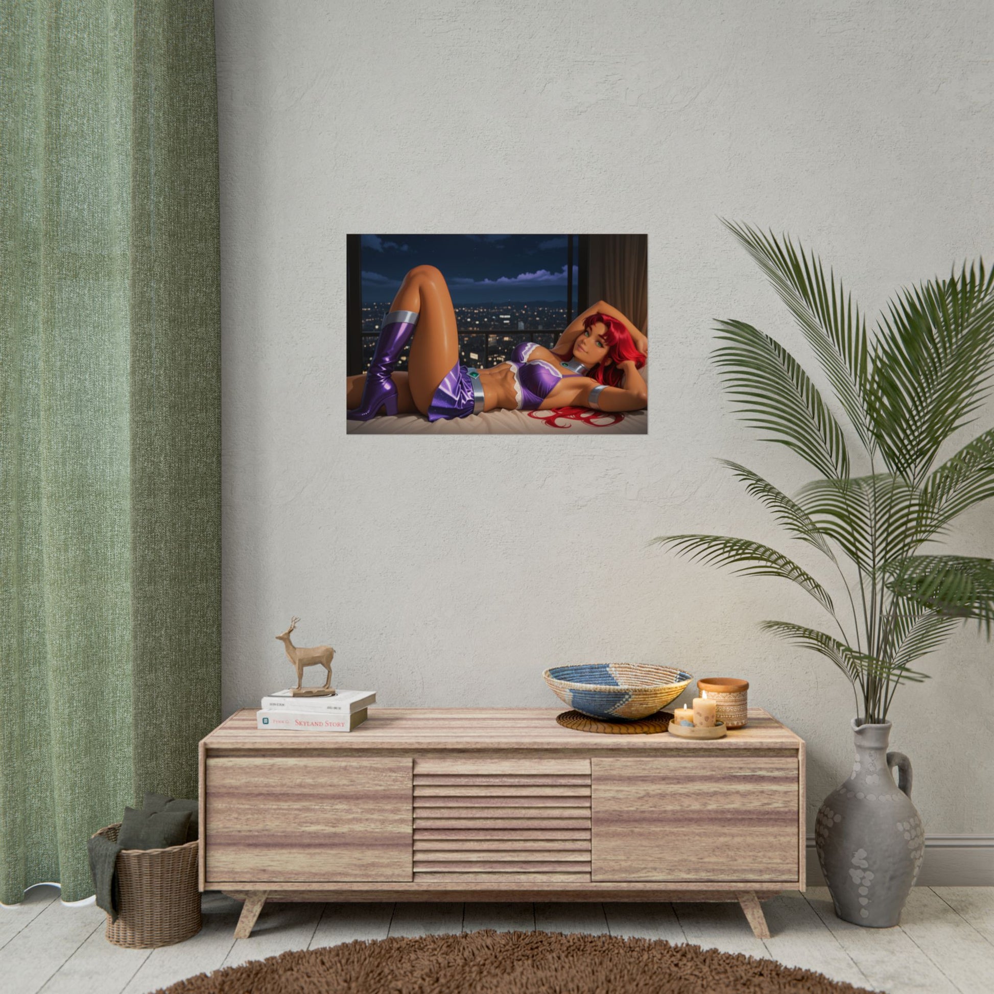 Цей витвір мистецтва в стилі аніме зображує Старфаєр — сяючу, могутню та сповнену космічного шарму. Зі своїми сяючими зеленими очима, розпущеним волоссям та витонченою позою вона привносить у ваш простір одночасно силу та тепло. Ідеальний настінний витвір мистецтва в стилі вайфу для шанувальників естетики аніме та небесних героїнь.