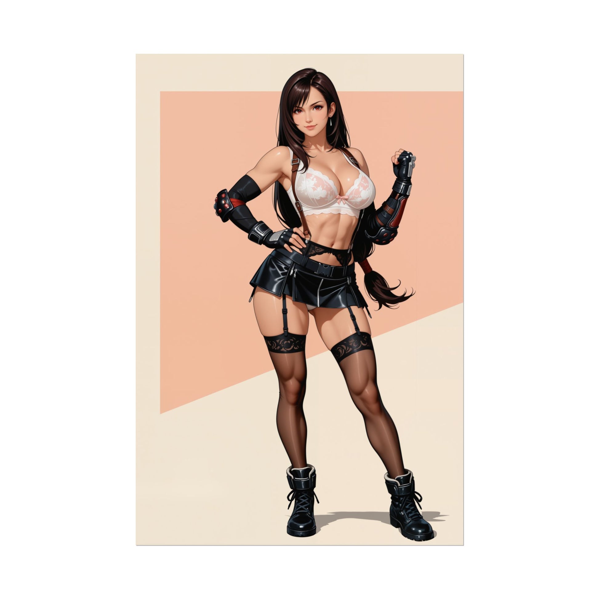 Цей кінематографічний аніме-арт зображує Тіфу Локхарт як найкращу фентезійну героїню — елегантну, могутню та неперевершено харизматичну. Її вражаюча поза та яскравий вираз обличчя створюють ідеальне поєднання краси та сили, що робить цей арт-принт у стилі вайфу центральним елементом як для шанувальників аніме, так і для шанувальників ігор.