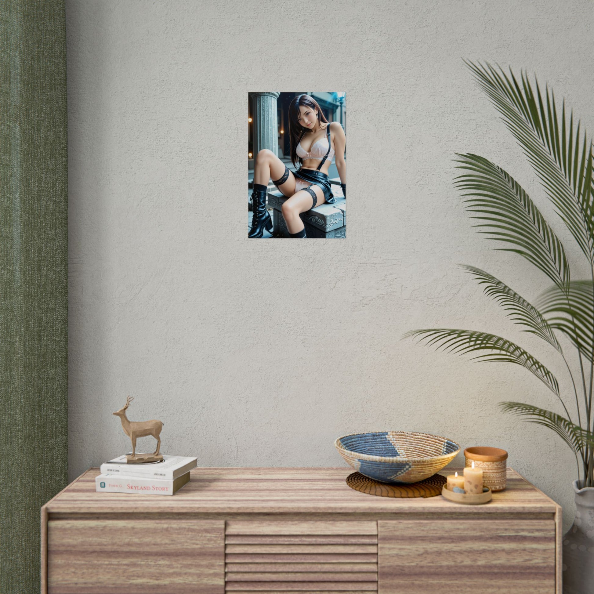 Цей кінематографічний аніме-арт переосмислює Тіфу Локхарт як героїчну бійницю — елегантну, впевнену в собі та сповнену енергії. Її культові рукавички, вражаюча поза та виразні очі відображають її безстрашну особистість, що робить цей принт у стилі вайфу натхненним центральним елементом будь-якого геймера.