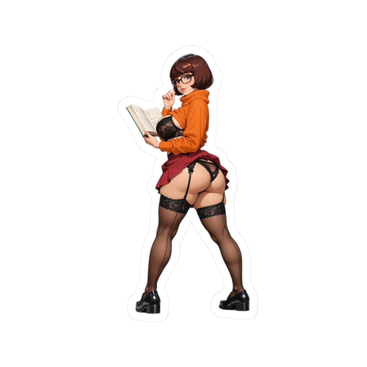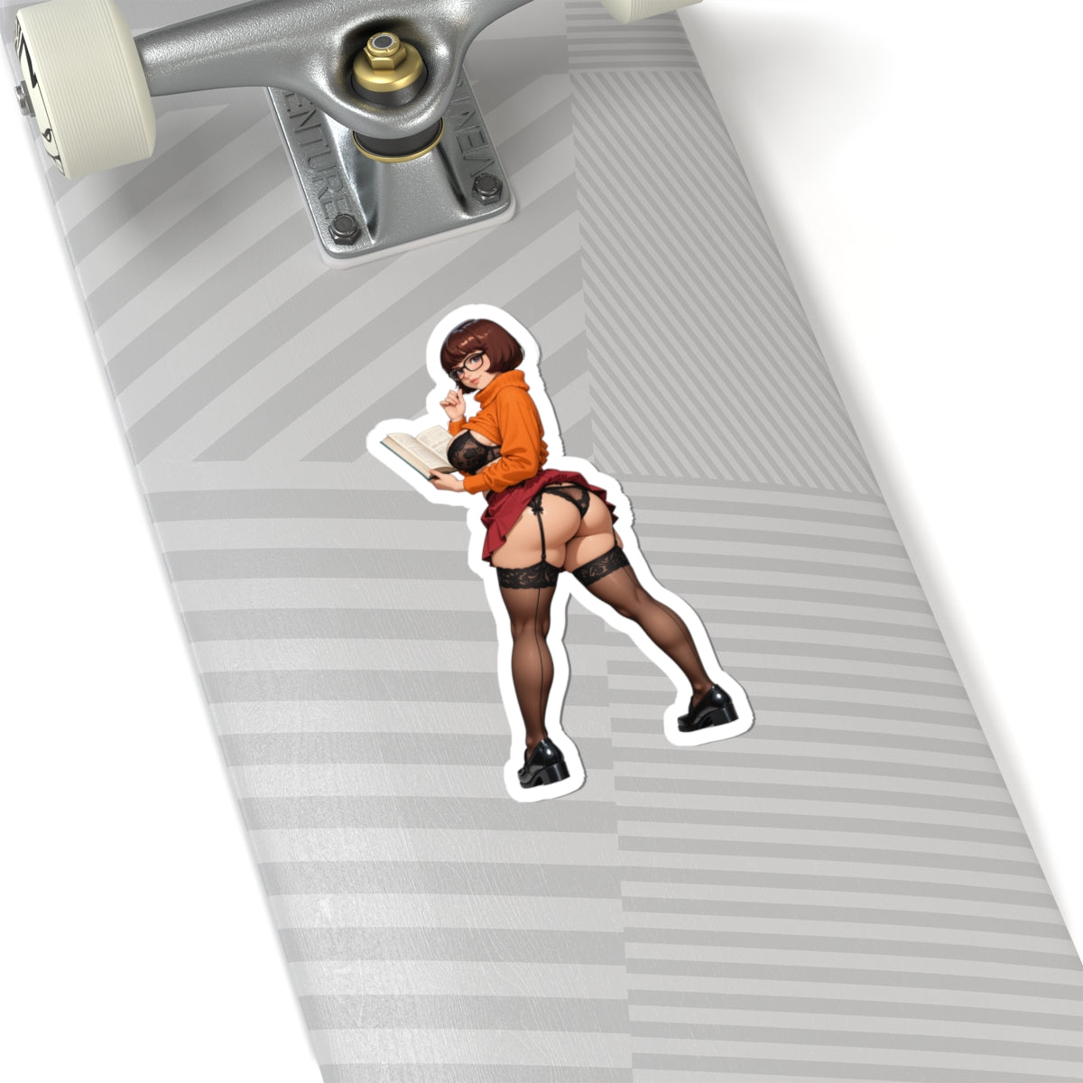 Наліпка з Велмою, створена з чистим, виразним зображенням персонажів для шанувальників класичних детективних мультфільмів. Виготовлена зі 100% міцного вінілу , вона має глянцеве, яскраве покриття та надійний клей, який надійно тримається на будь-якій гладкій поверхні в приміщенні.