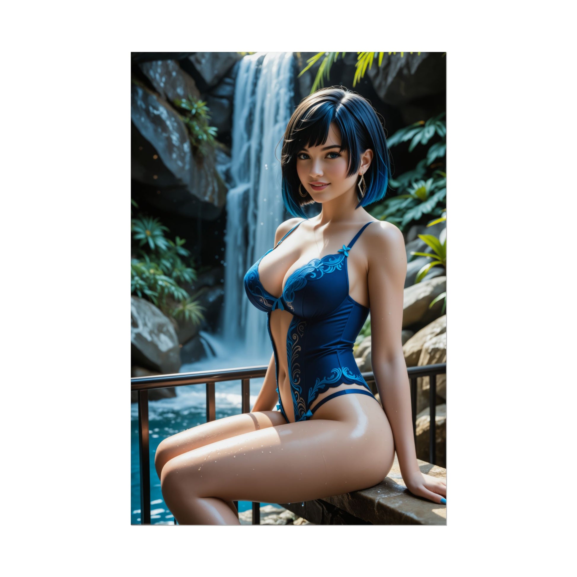 Єлан сяє в цьому принті в стилі аніме — елегантному, стратегічному та загадковому. Її гідроенергія та ледь помітна посмішка роблять цей виріб ідеальним для шанувальників аніме, які захоплюються спокійною силою та тактичною красою.