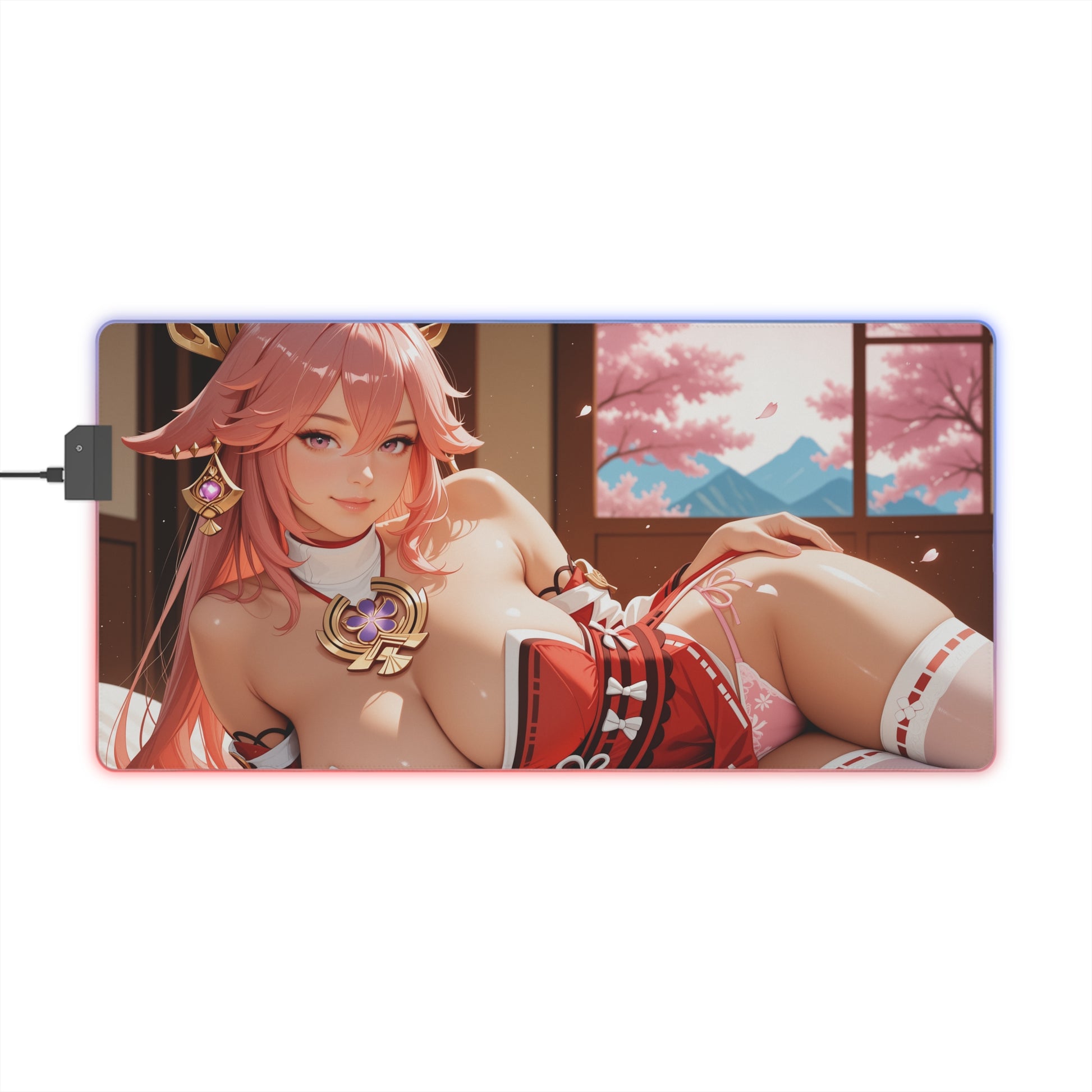 Килимок для столу Yae Miko – світлодіодний RGB-підсвітлювальний килимок, ігровий комплект із зображенням дівчини з аніме Waifu