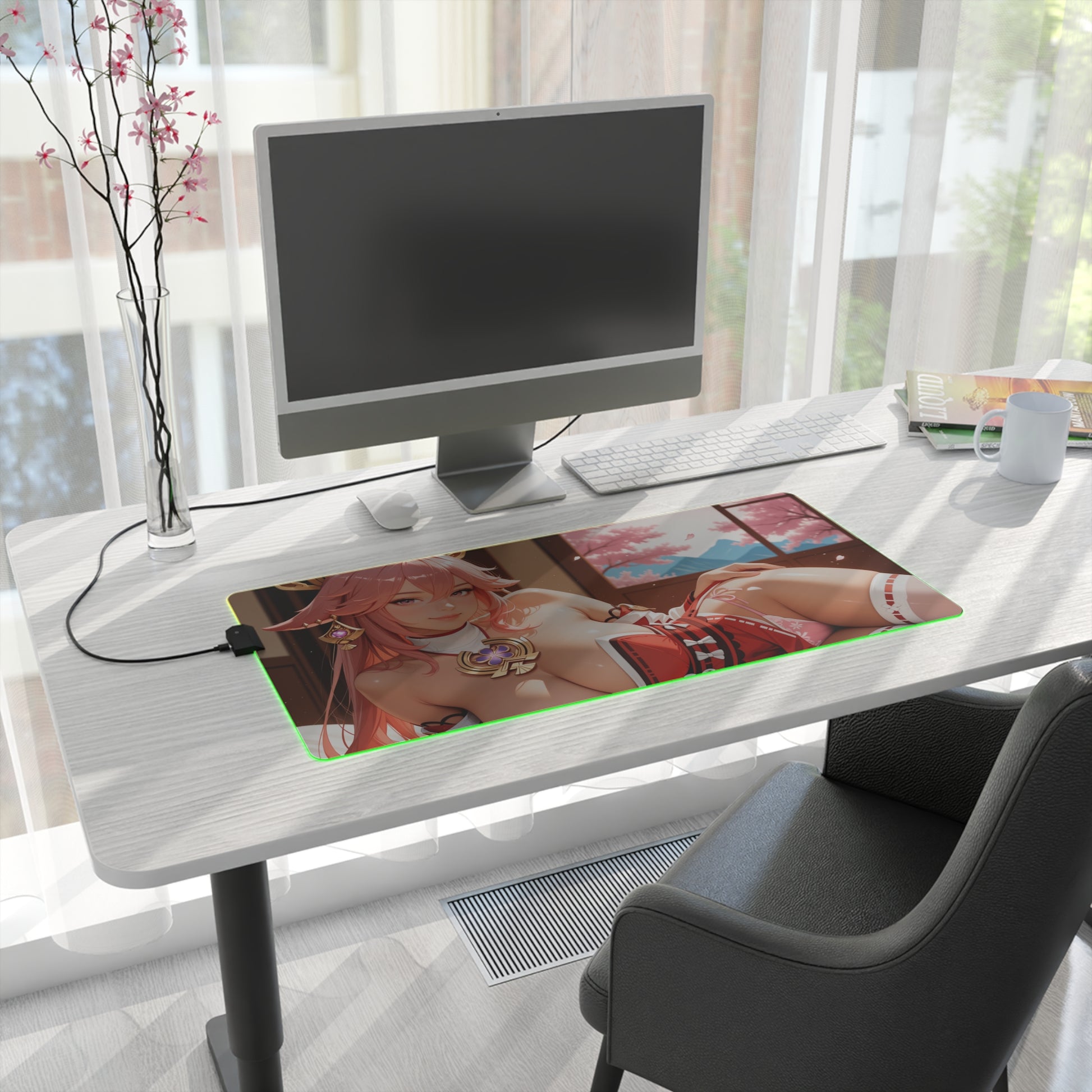Наповніть своє робоче місце божественною елегантністю за допомогою цього світлодіодного килимка для столу з RGB-підсвіткою, на якому зображена Яе Міко — чарівна вайфу, натхненна містичним світом Genshin Impact . Її лисяча чарівність, витончена краса та спокійна впевненість створюють чарівну, розкішну атмосферу в будь-якій ігровій чи творчій обстановці.