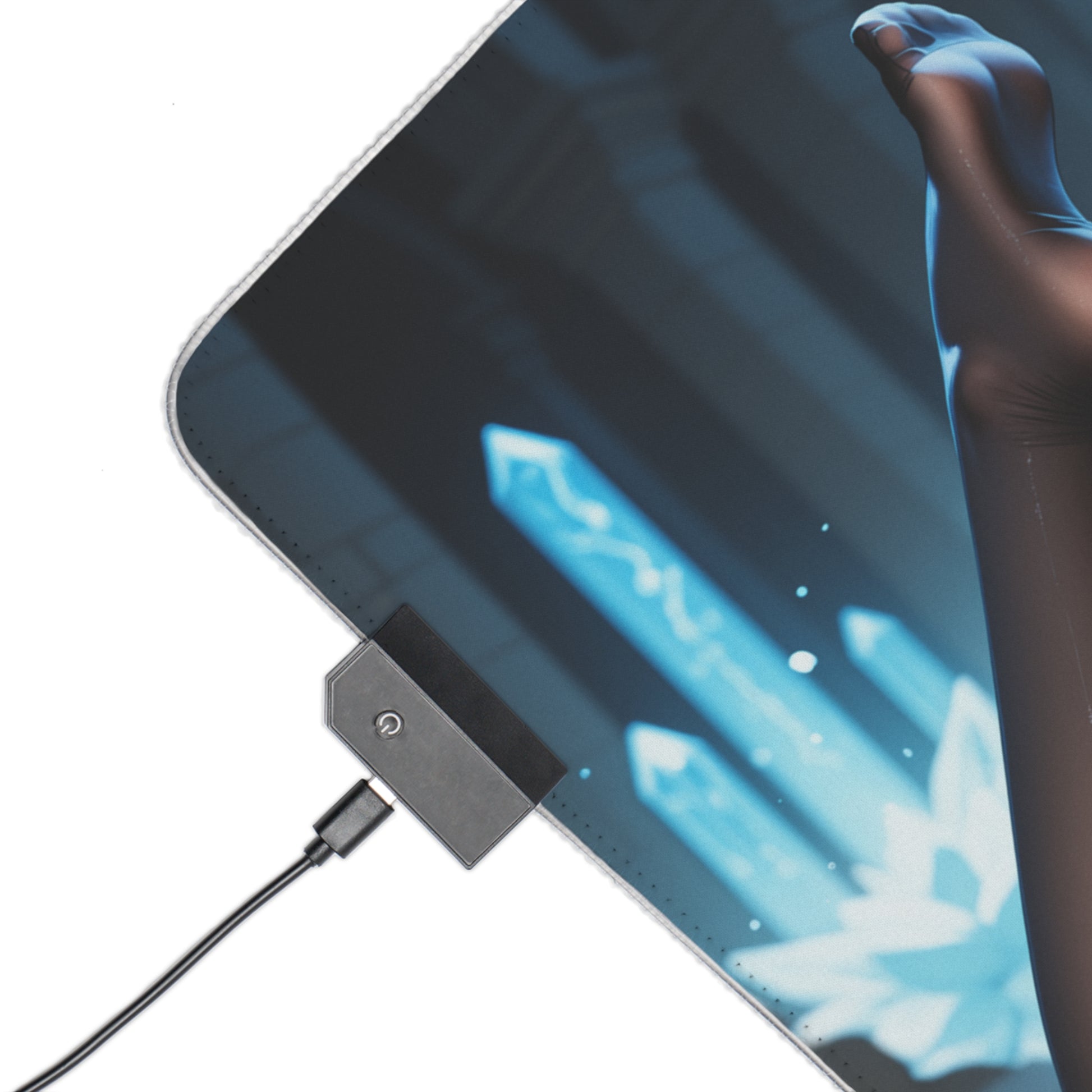 Додайте таємничості та вишуканості своєму робочому простору за допомогою цього світлодіодного килимка з RGB-підсвіткою із зображенням Єлан — стильної вайфу, натхненної таємним світом Genshin Impact . Її гострий погляд, впевнена постава та холодна блакитна естетика створюють вишукану, висококласну атмосферу в будь-якій ігровій чи творчій обстановці.