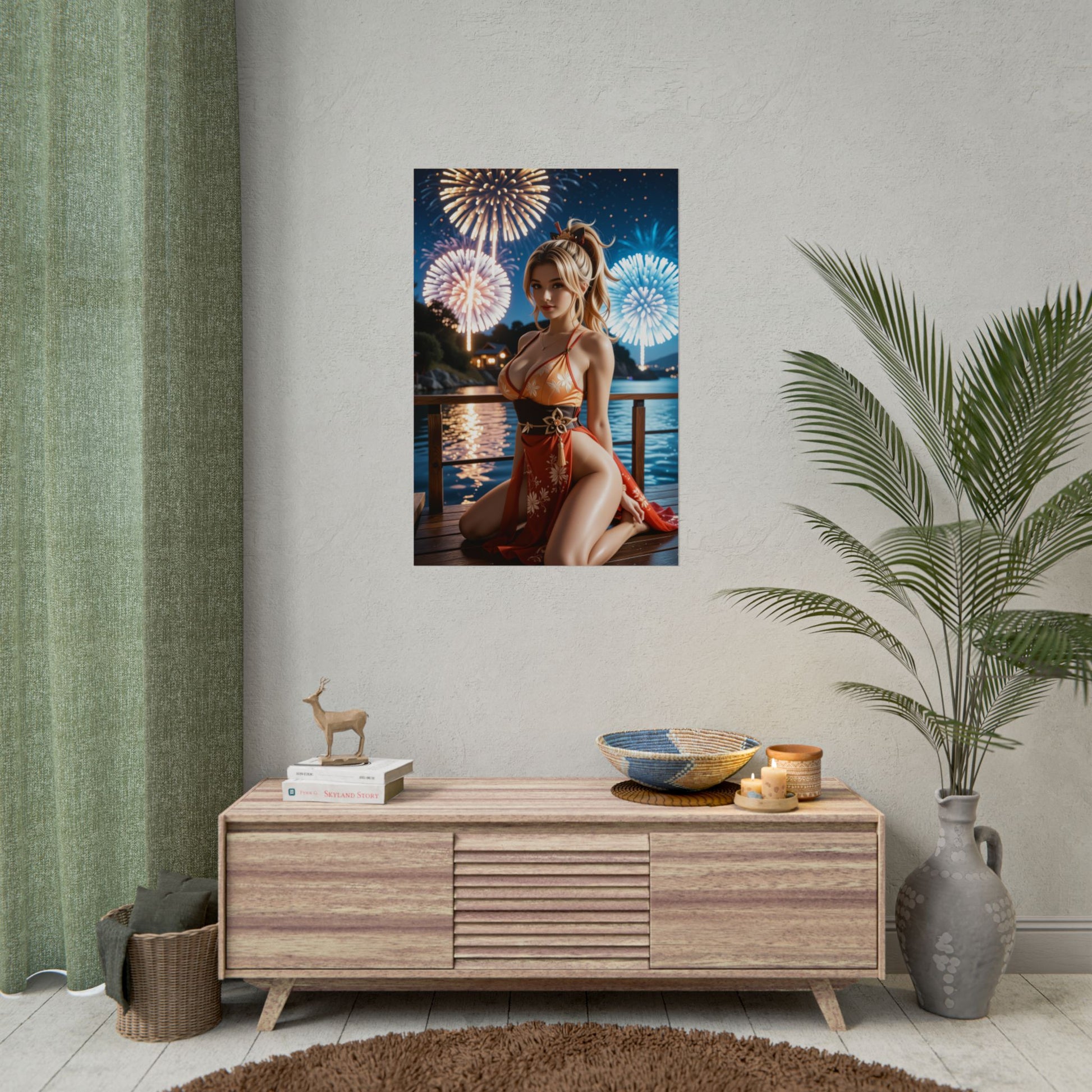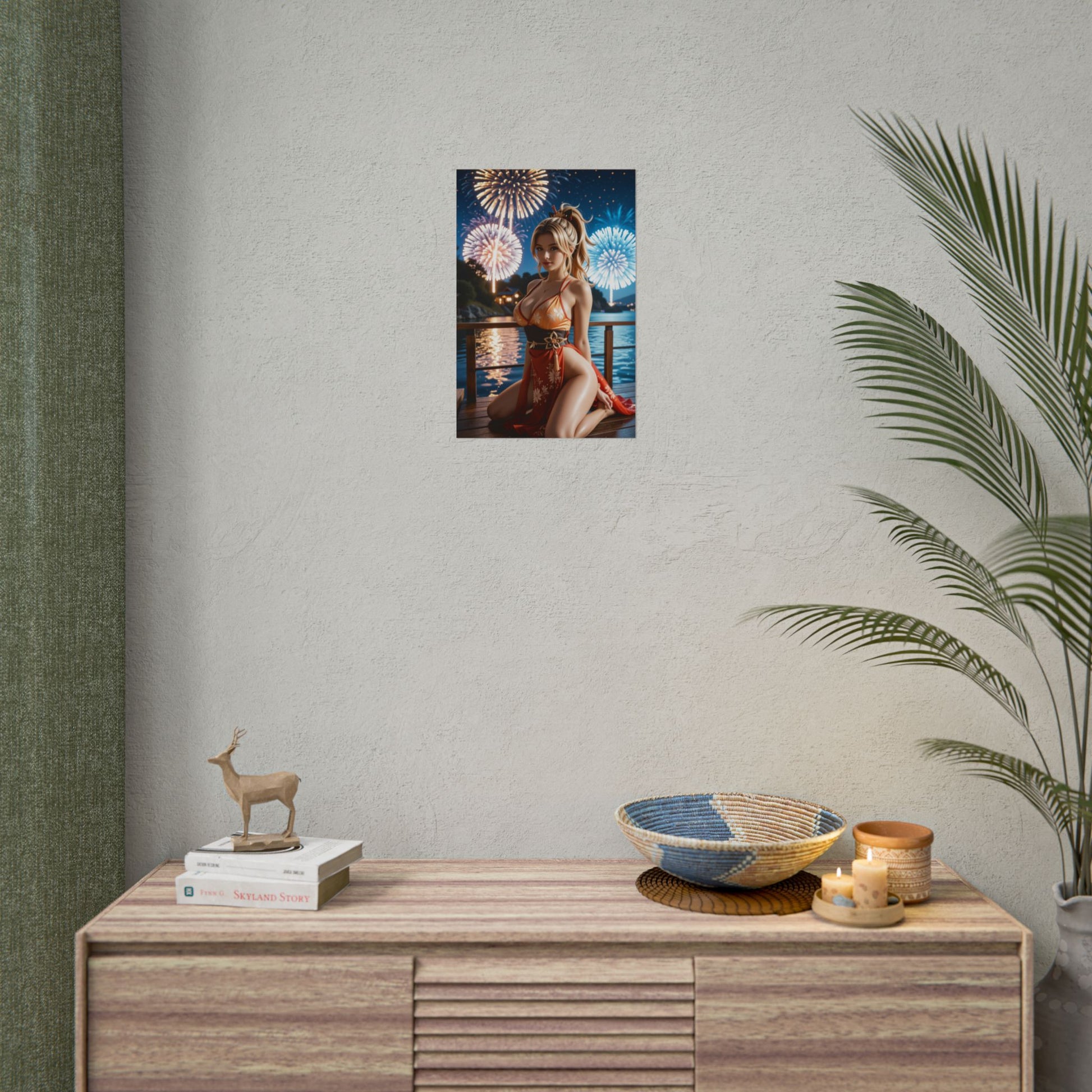 Цей принт Йоімія в стилі аніме, що втілює її іскру та радість, поєднує в собі свято та силу. Її жвавий вираз обличчя та динамічна поза роблять її яскравою центральною прикрасою будь-якого простору у фентезійному стилі чи стіни отаку.